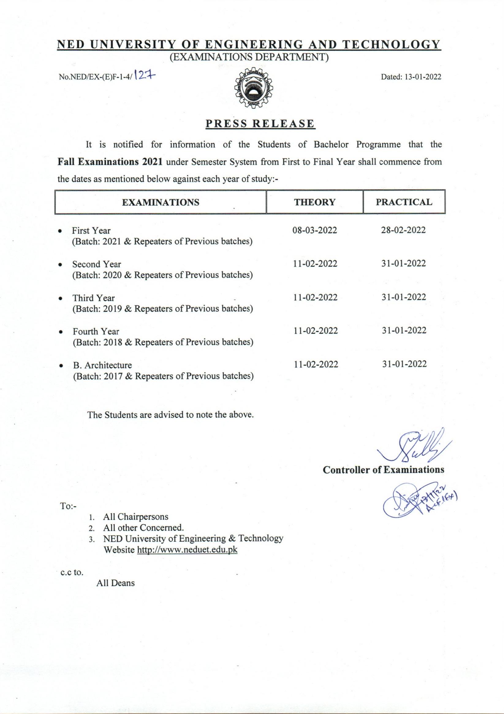 The examinations and evaluation system of NED University contribute making its degree as a benchmark of Quality Education. Examinations Department ensures timely preparation of marks certificates, transcripts.... Read More
