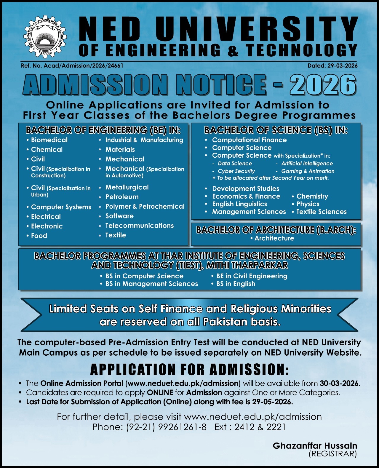 Important Links: - Scholarships NED - Opportunities Offered by HEC - Students Societies - Shuttle Routes