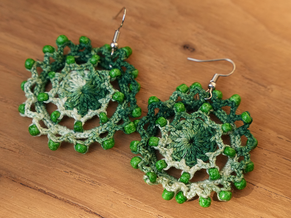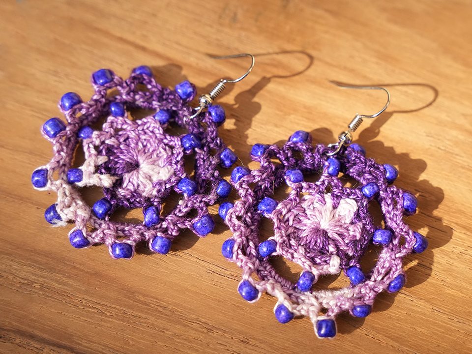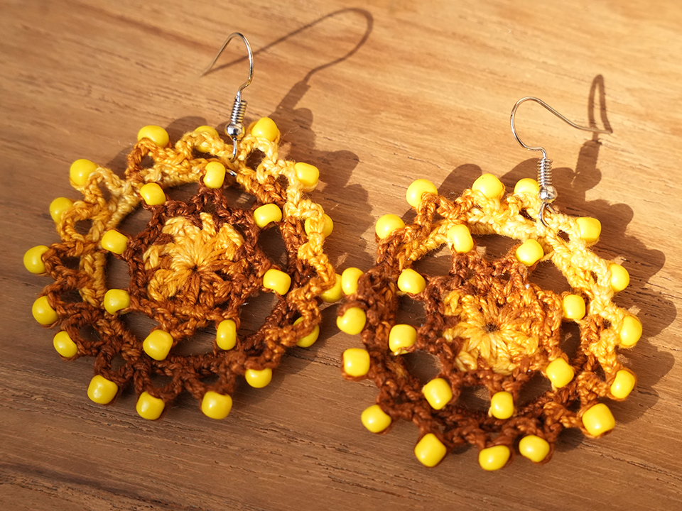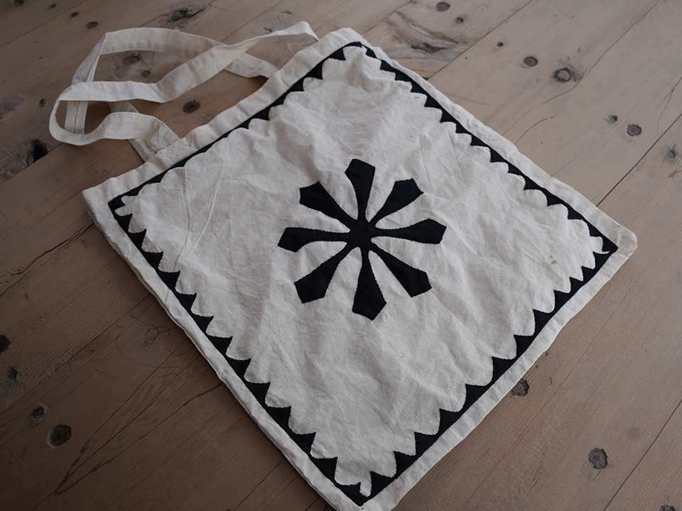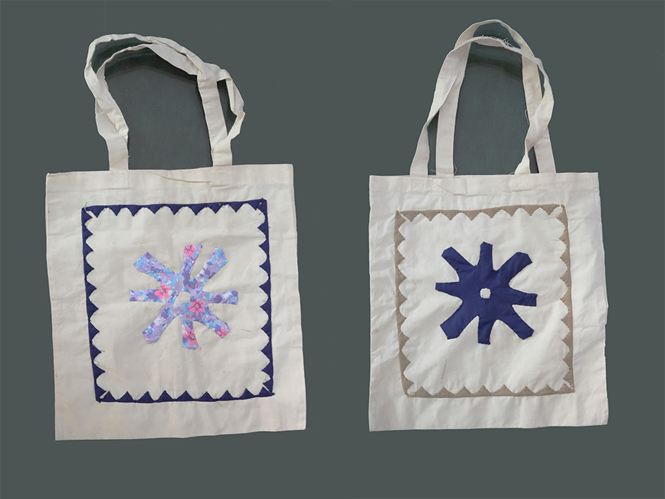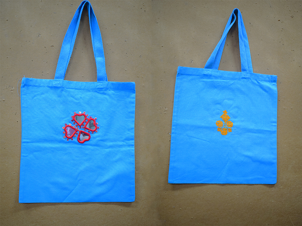 embroidered tote bags, cushion covers, and crochet earrings inspired by