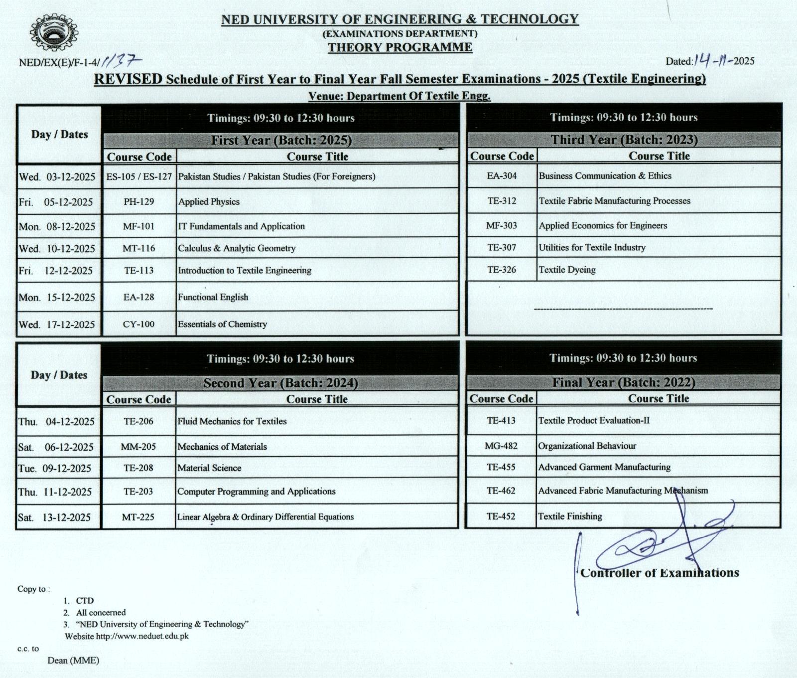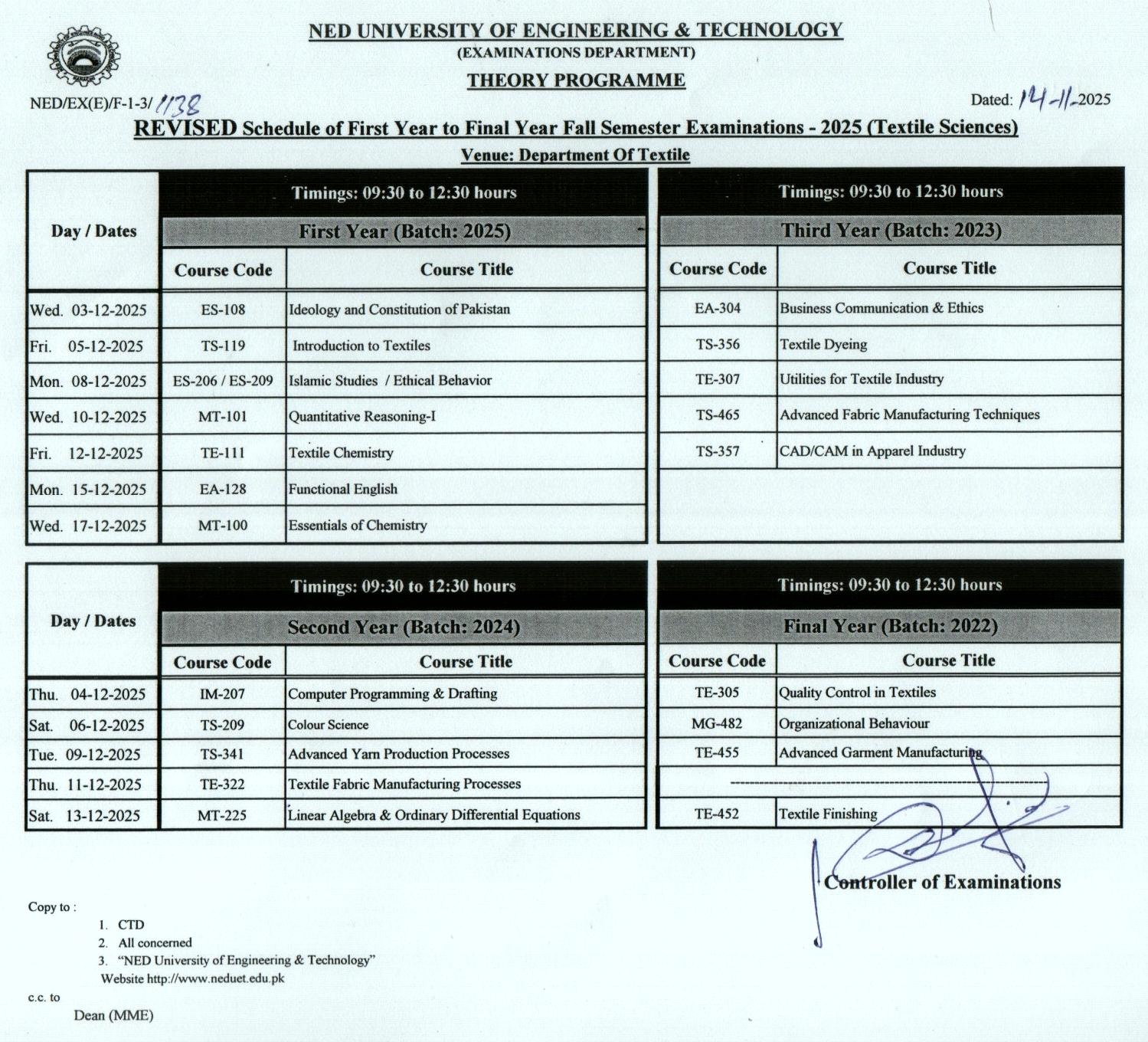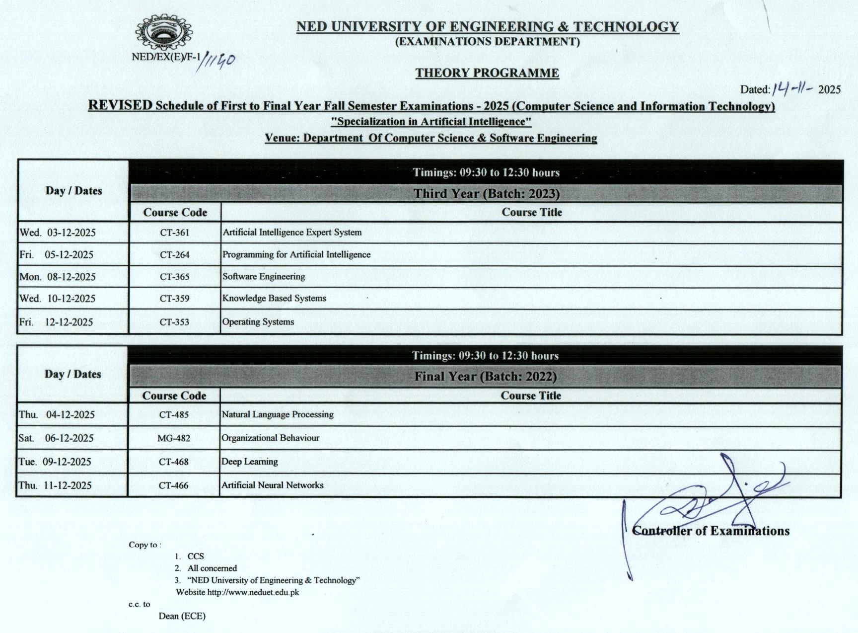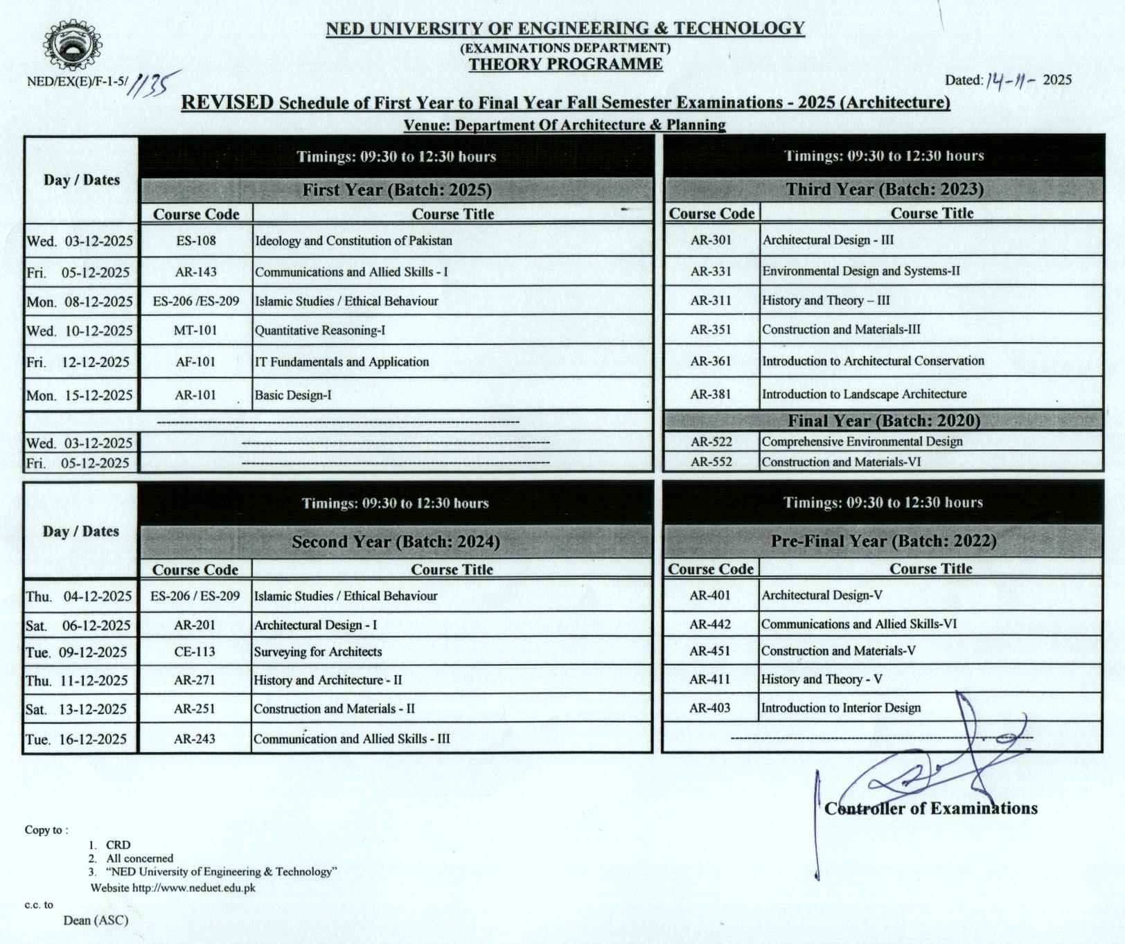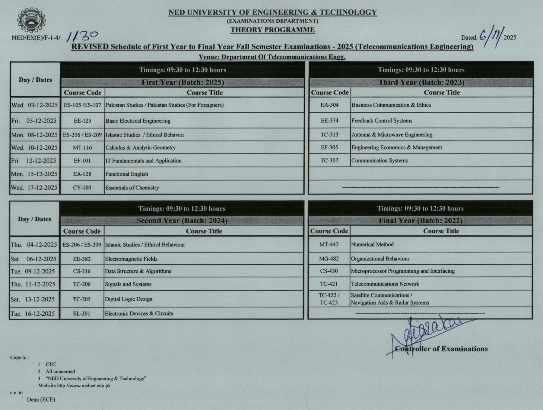 - Undergraduate - Revised Schedule of Clash Courses of Fall Semester Examinations - 2024
