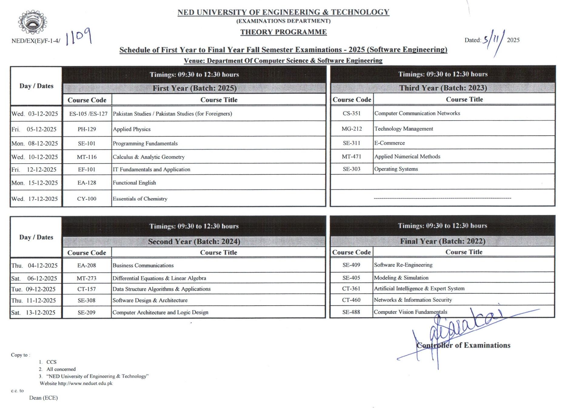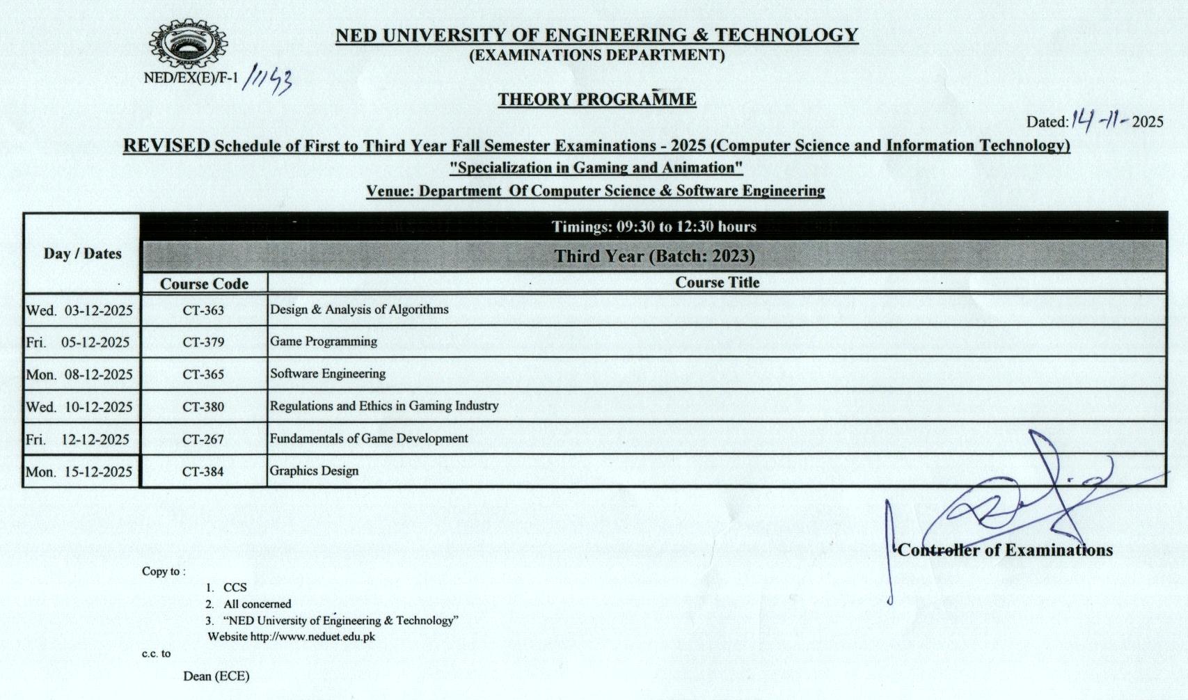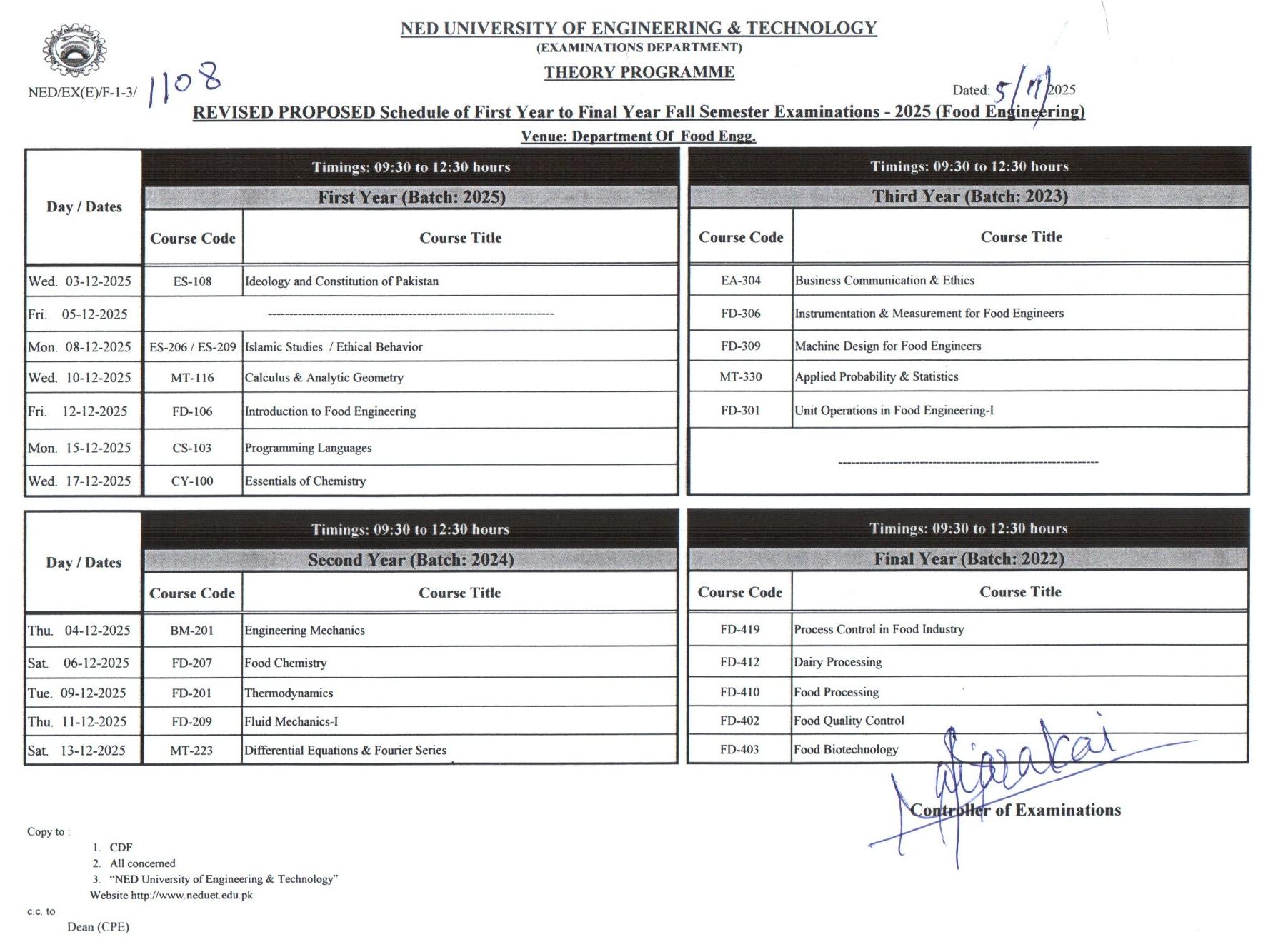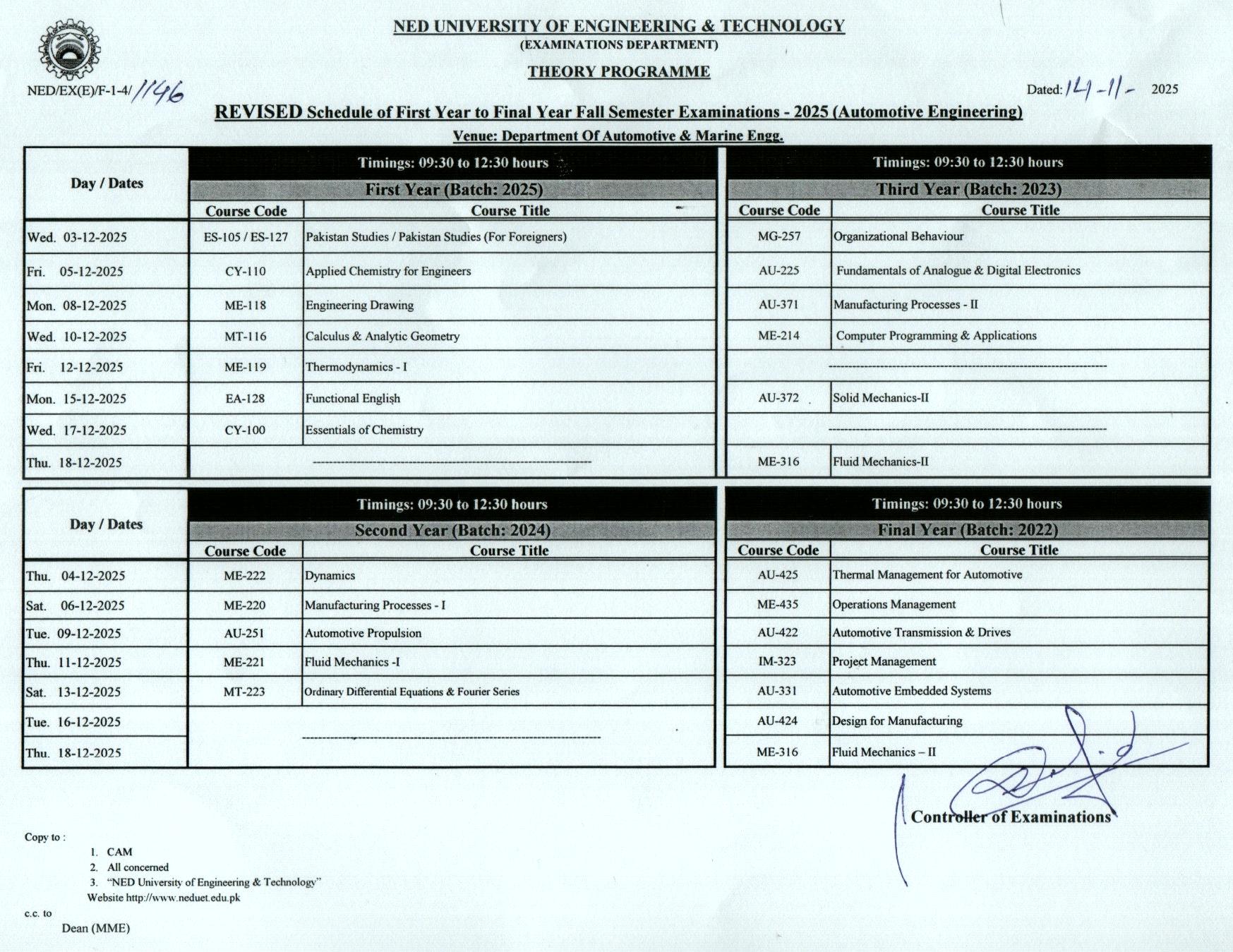 - Undergraduate - Revised Schedule of Clash Courses of Fall Semester Examinations - 2024