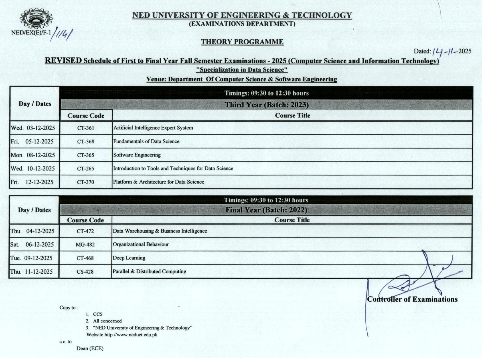 - Undergraduate - Revised Schedule of Clash Courses of Spring Semester Examinations - 2025