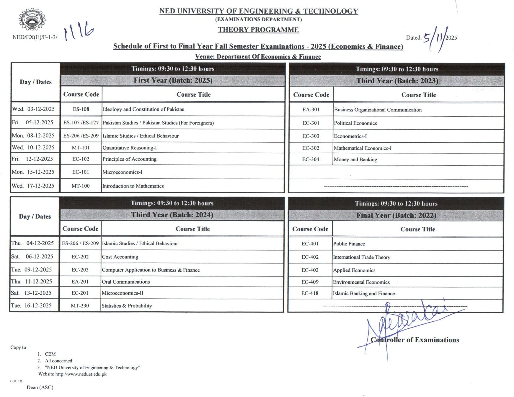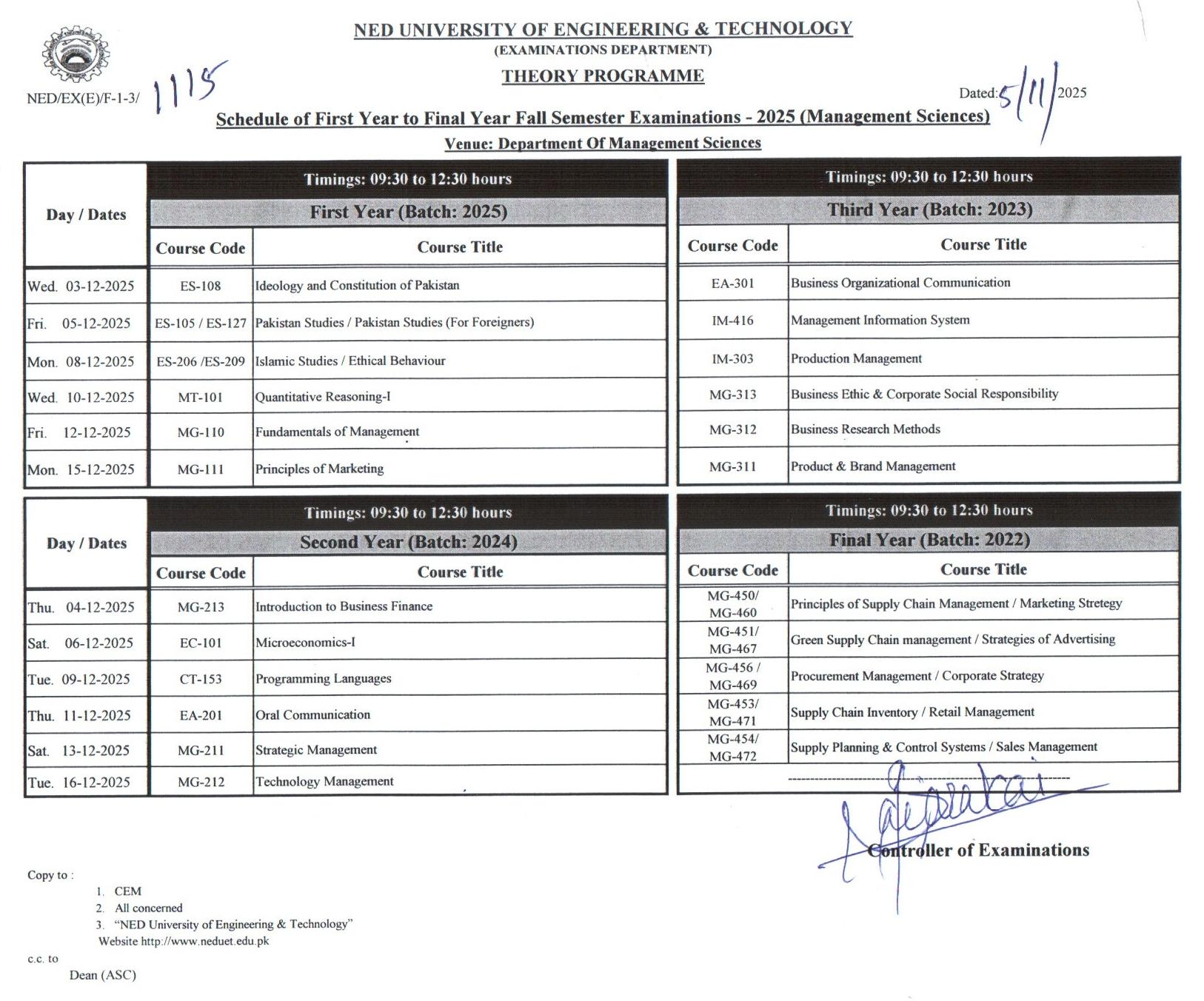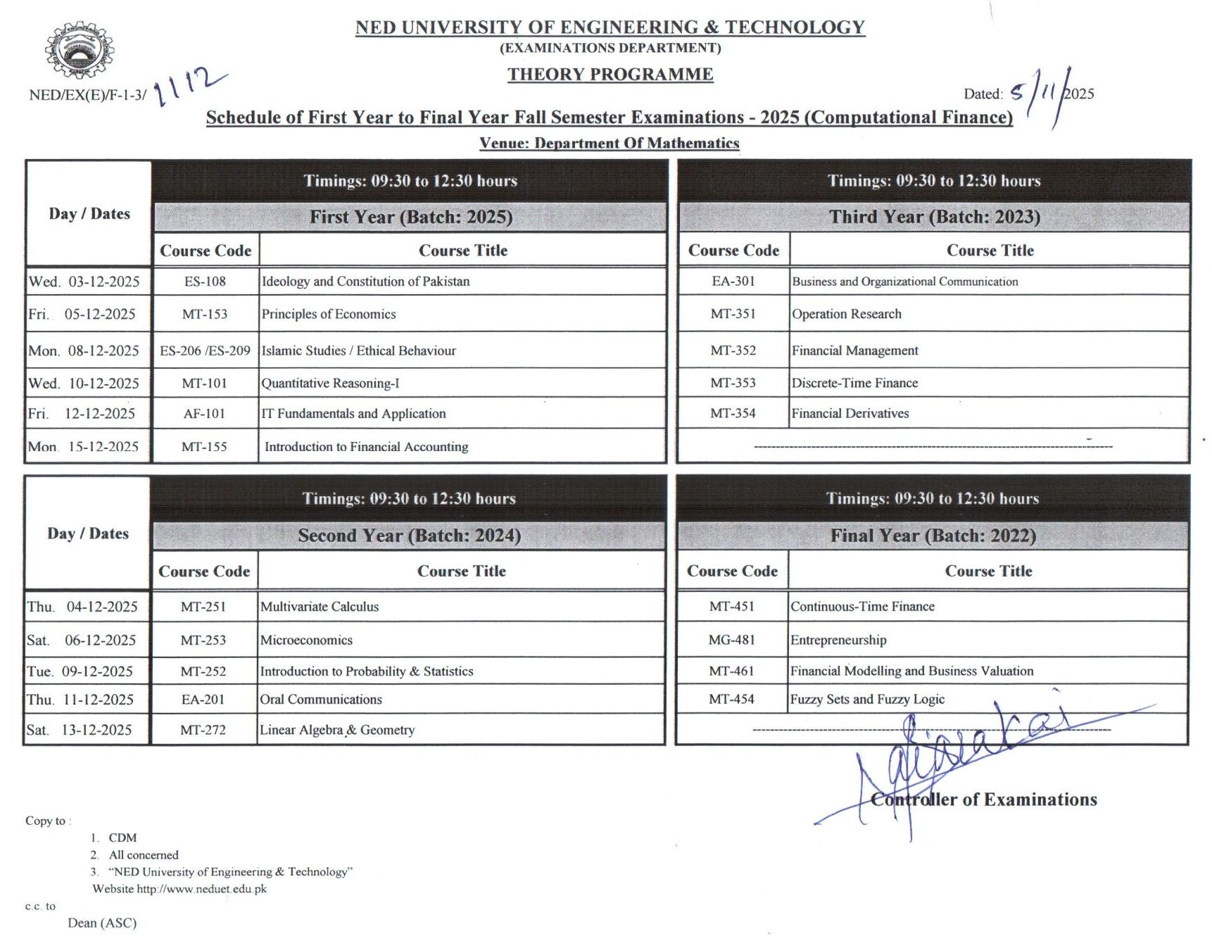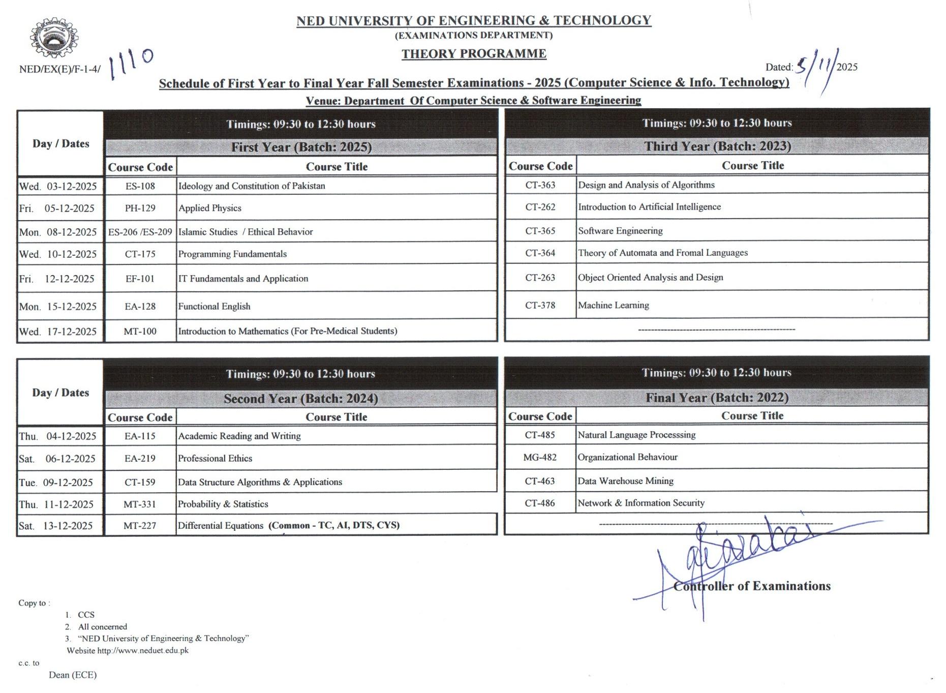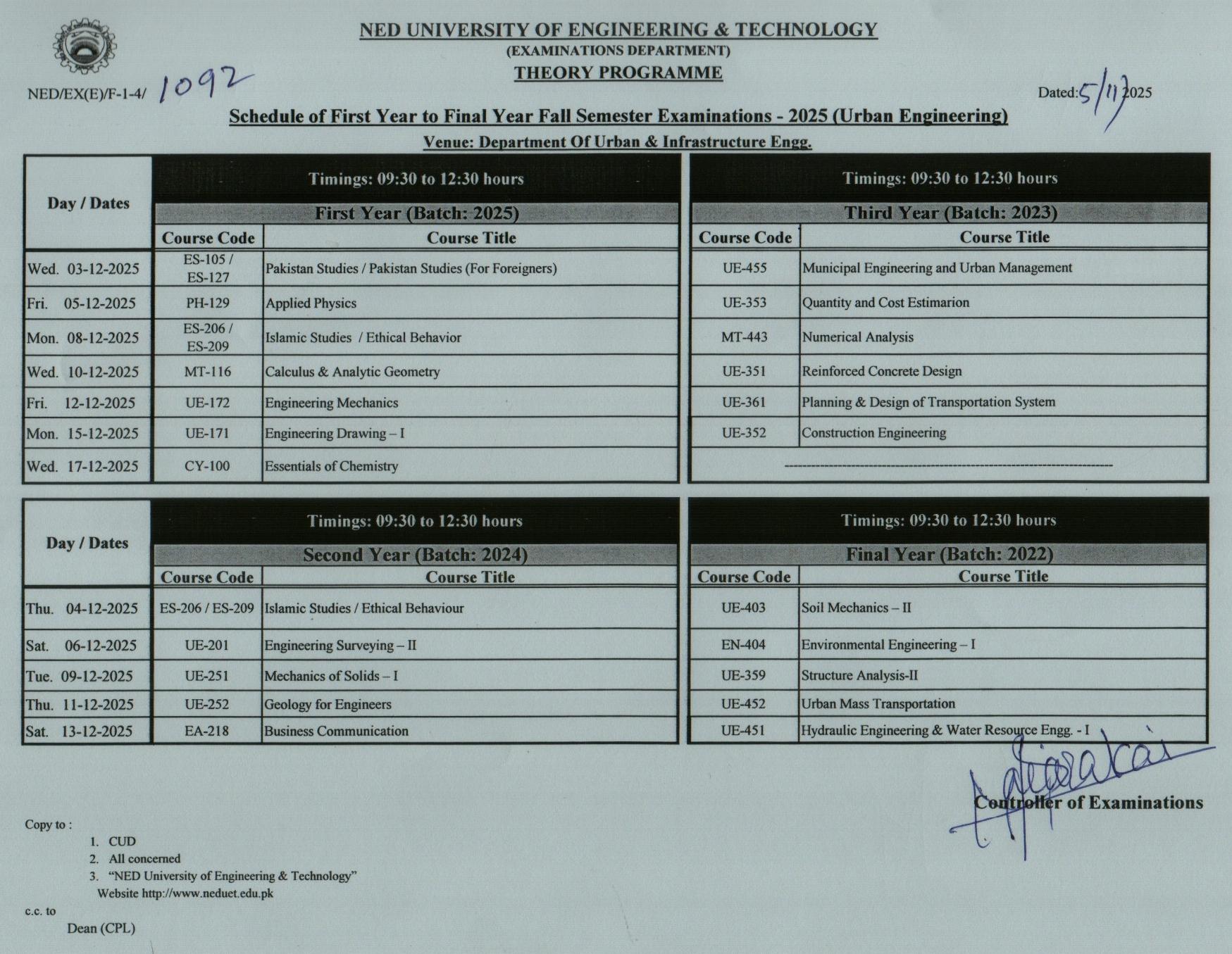 | UNDERGRADUATE SCHEDULES (FALL SEMESTER EXAMINATION 2025) |
