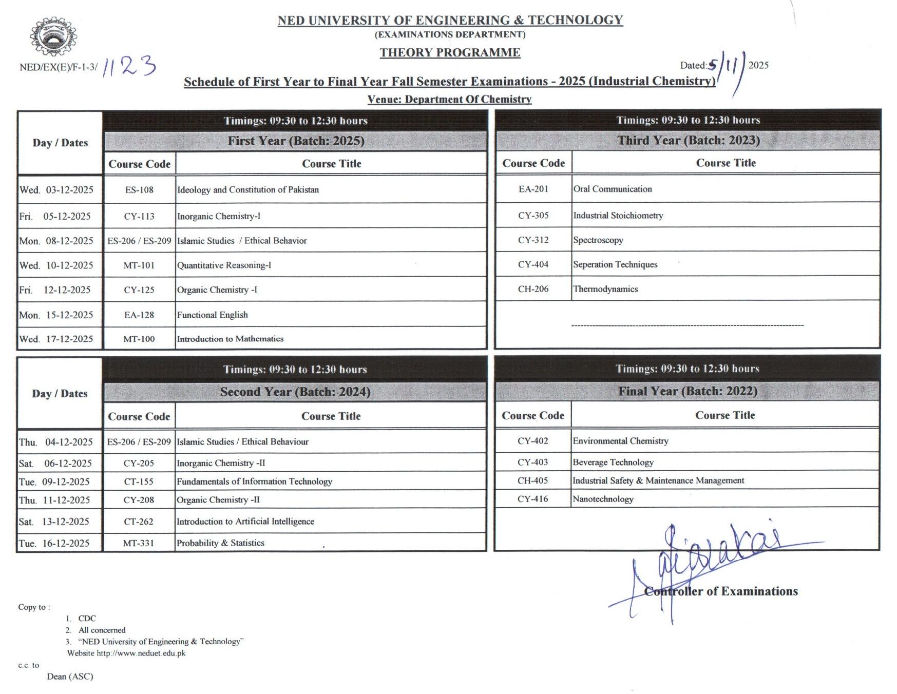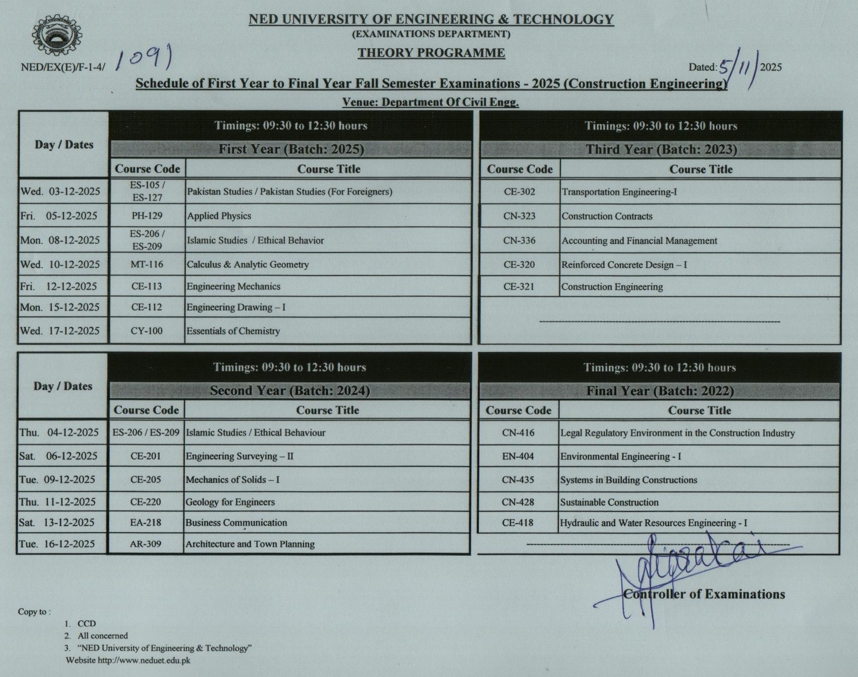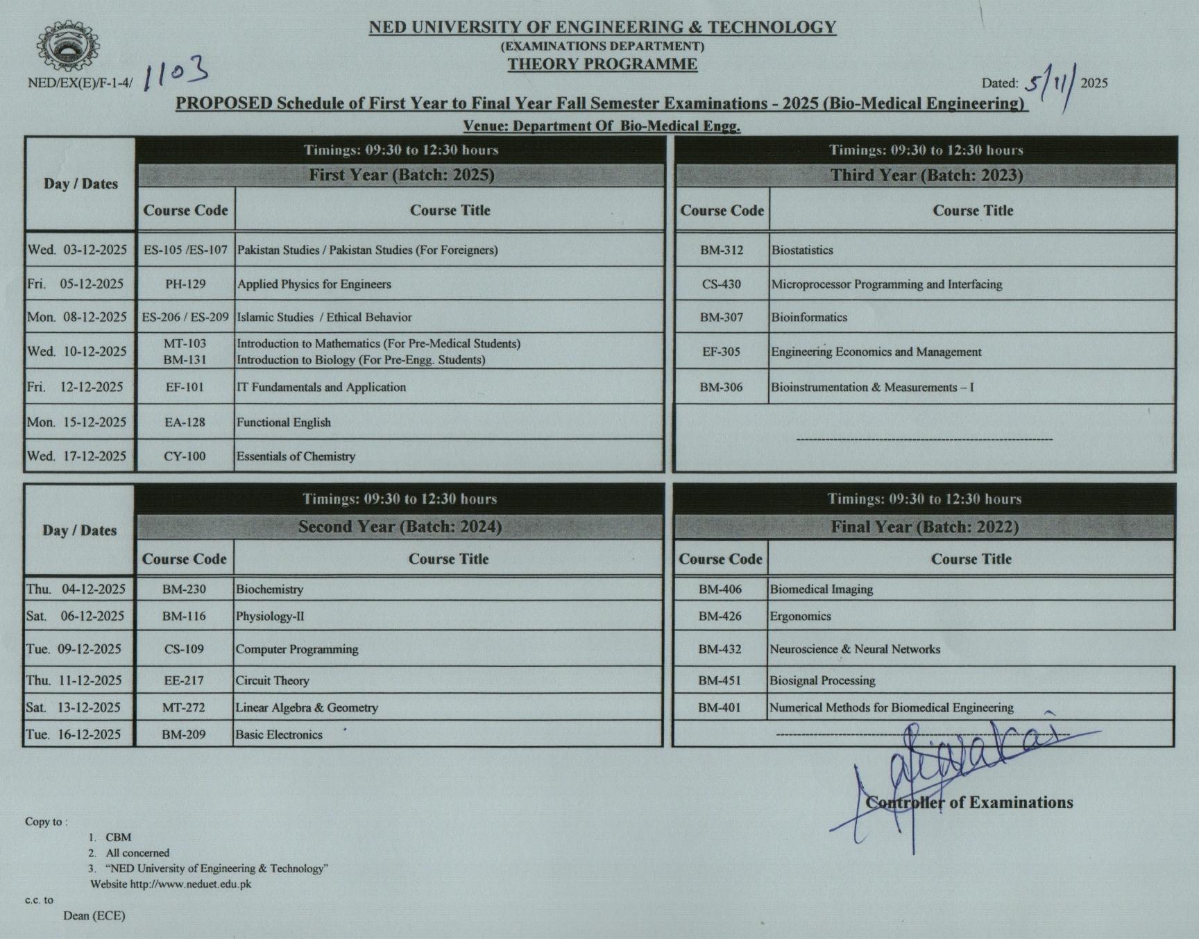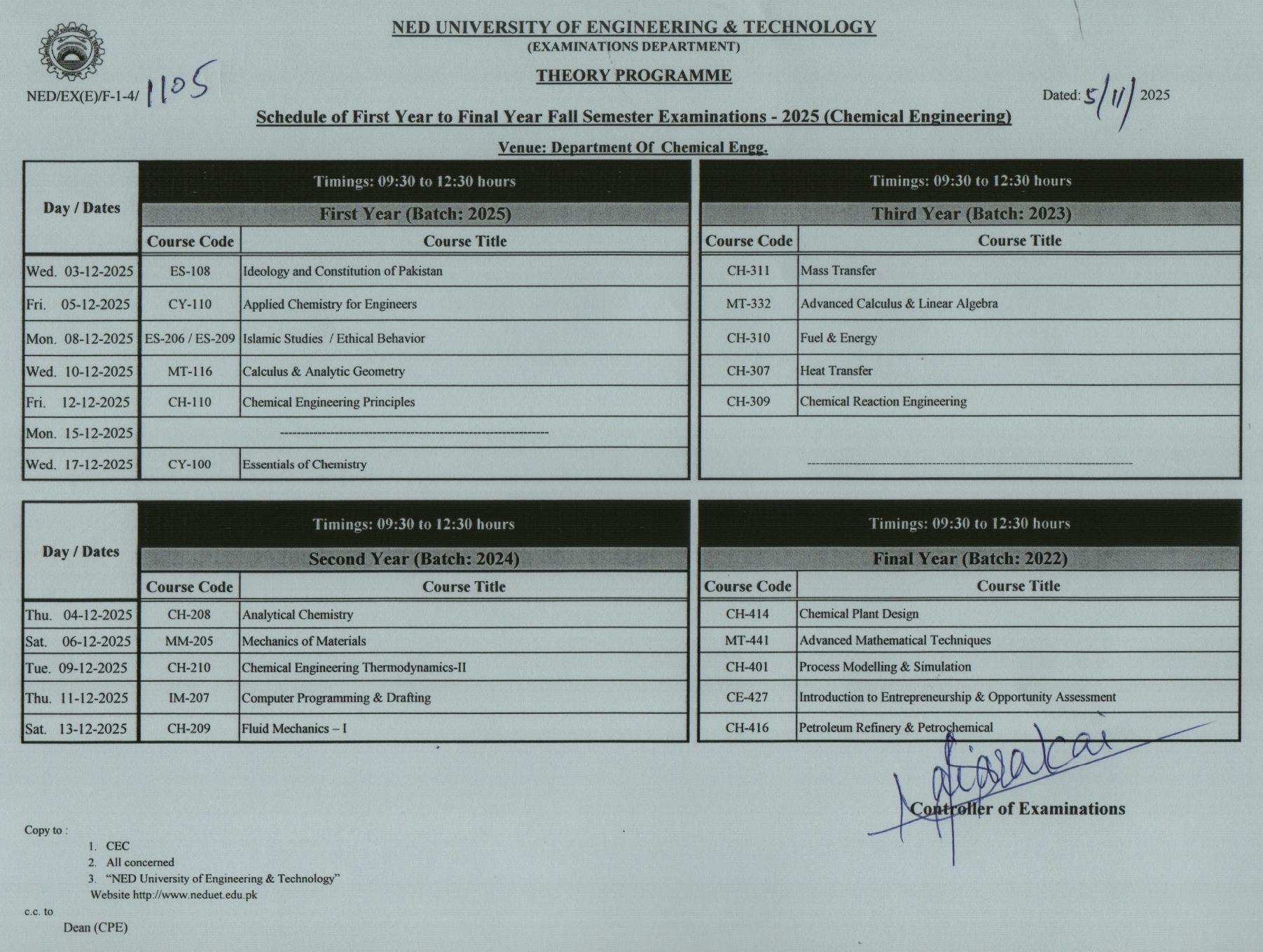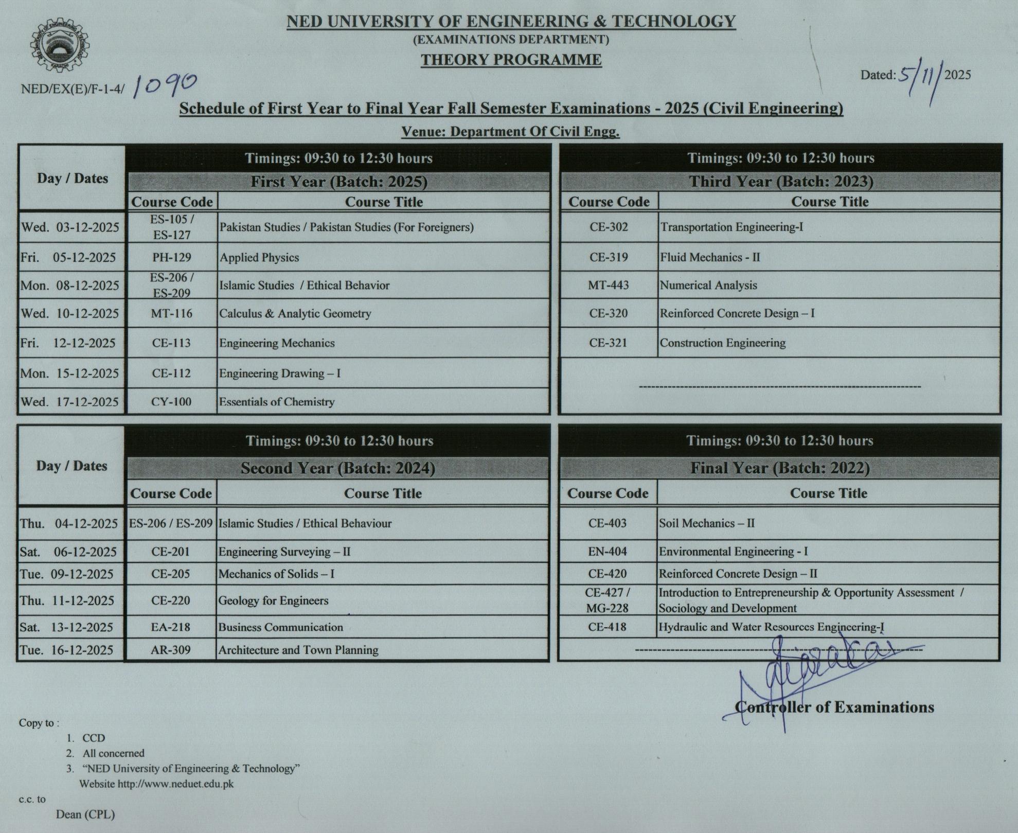 | UNDERGRADUATE SCHEDULES (FALL SEMESTER EXAMINATION 2025) |