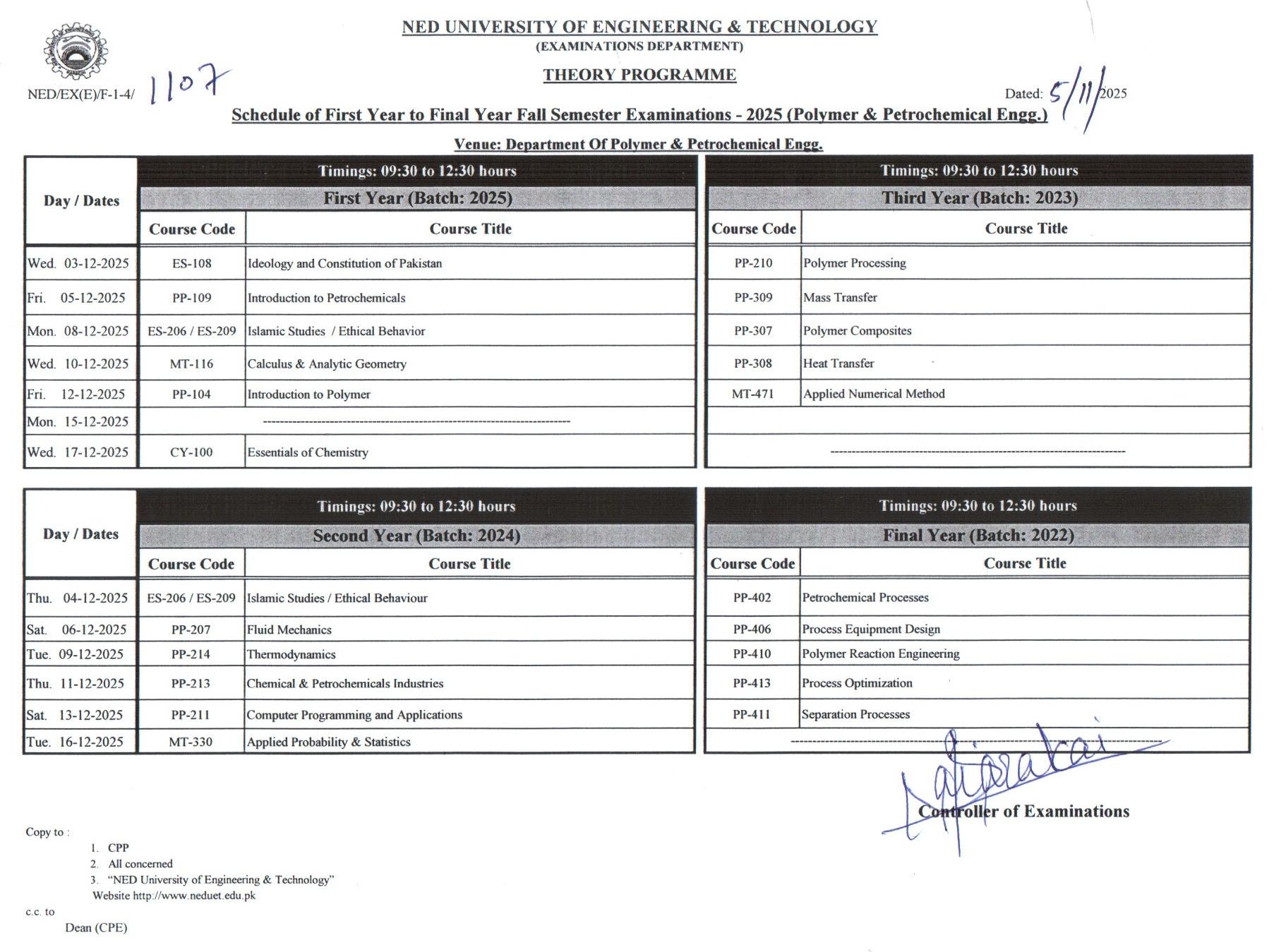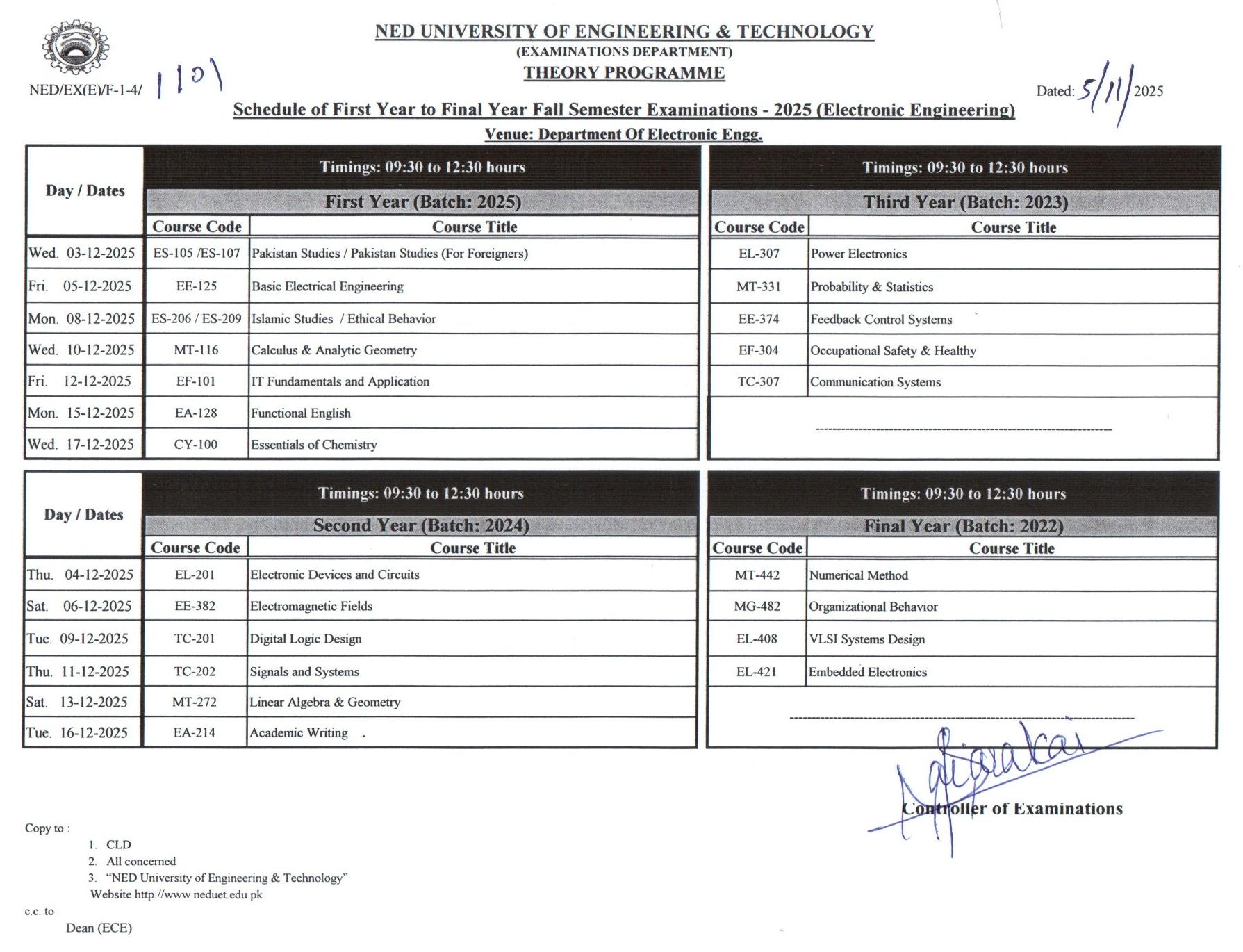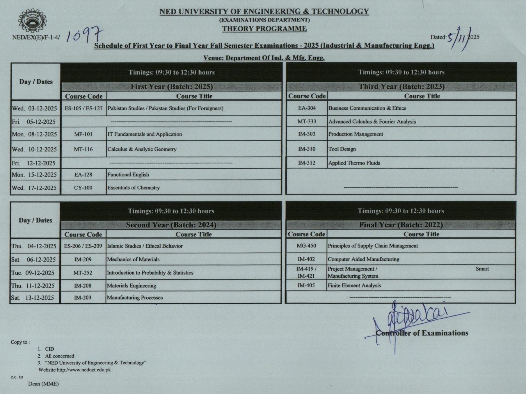 | IIEE – INSTITUTE OF INDUSTRIAL ELECTRONICS ENGINEERING SCHEDULES (SPRING SEMESTER EXAMINATIONS 2025) |