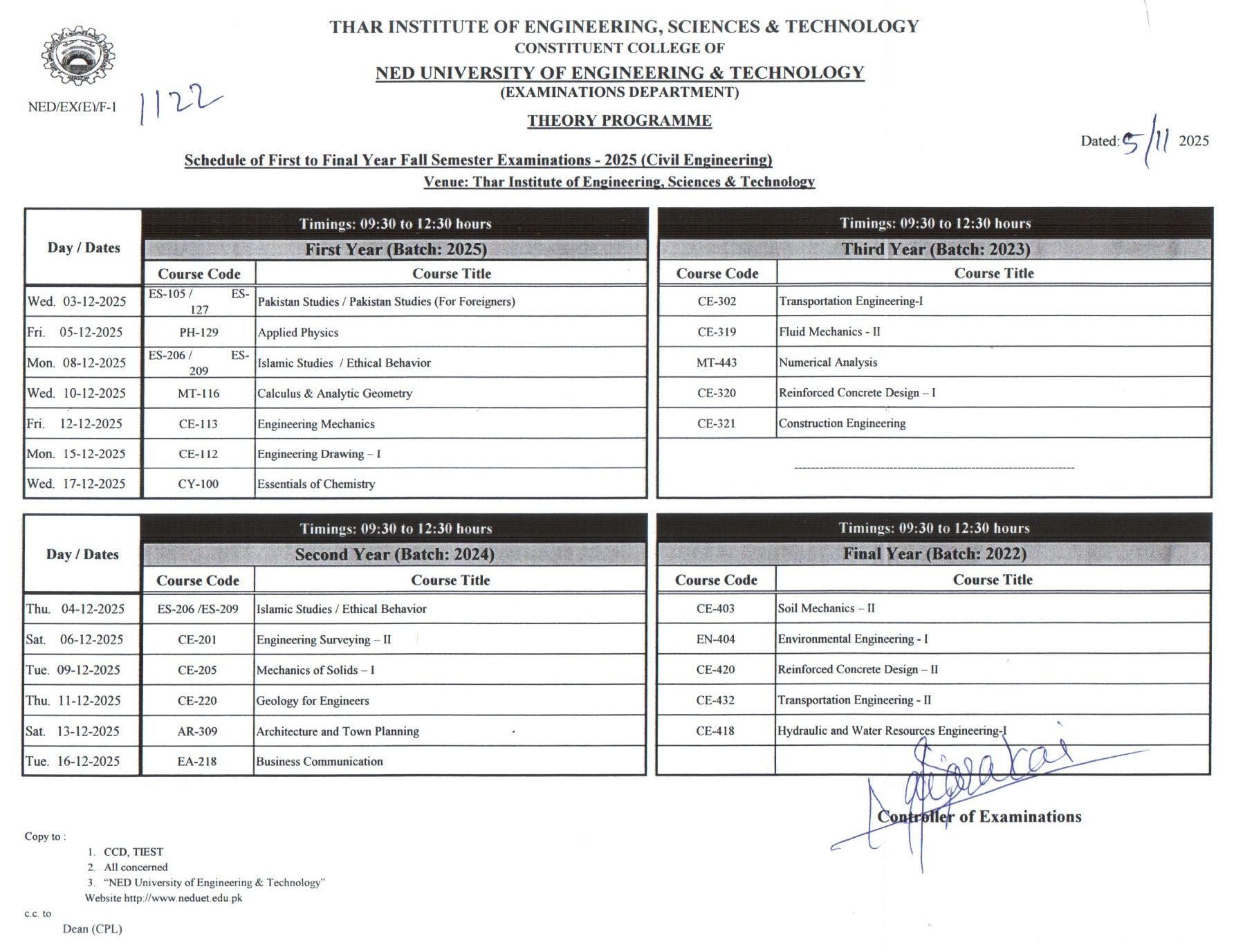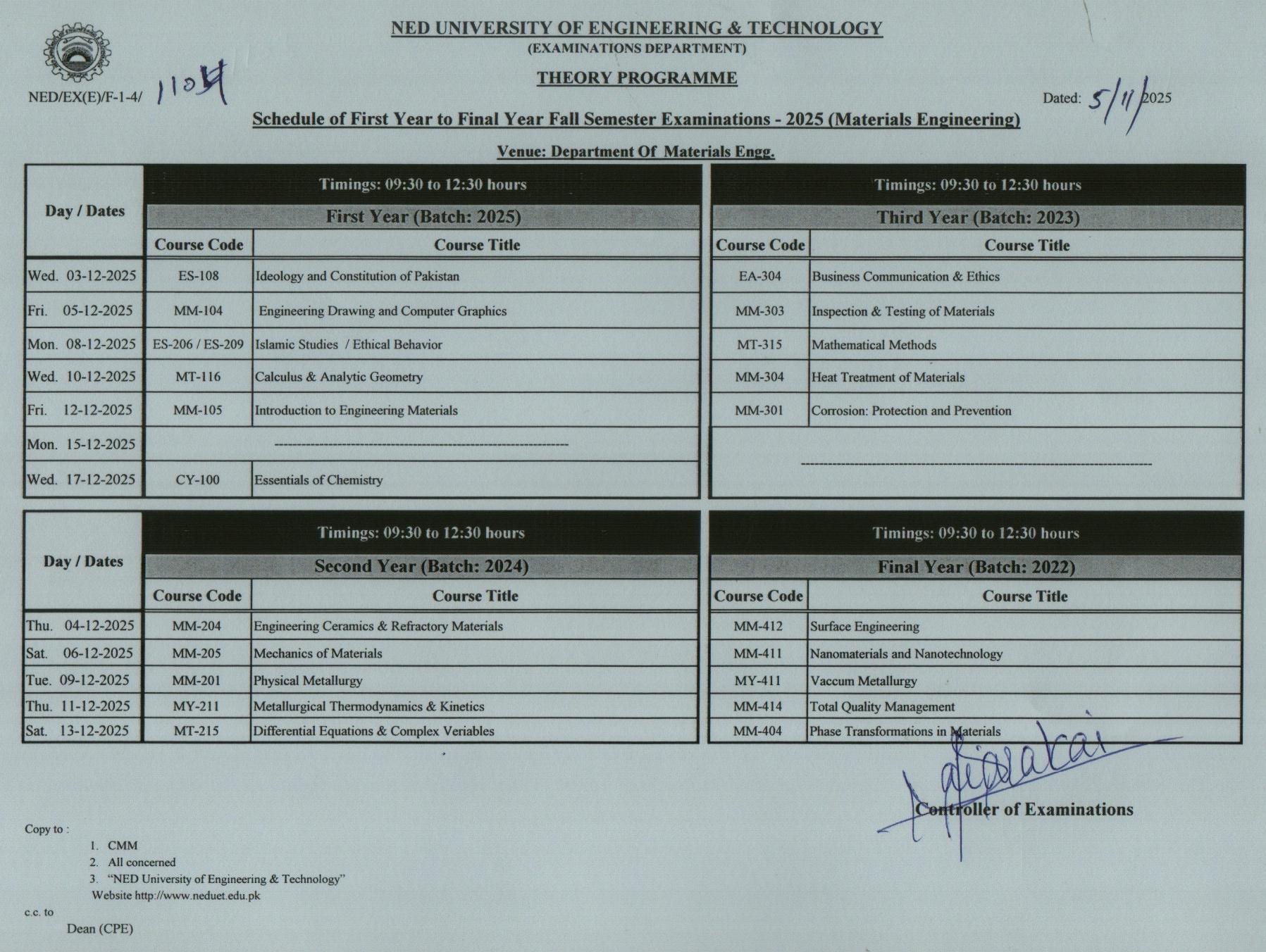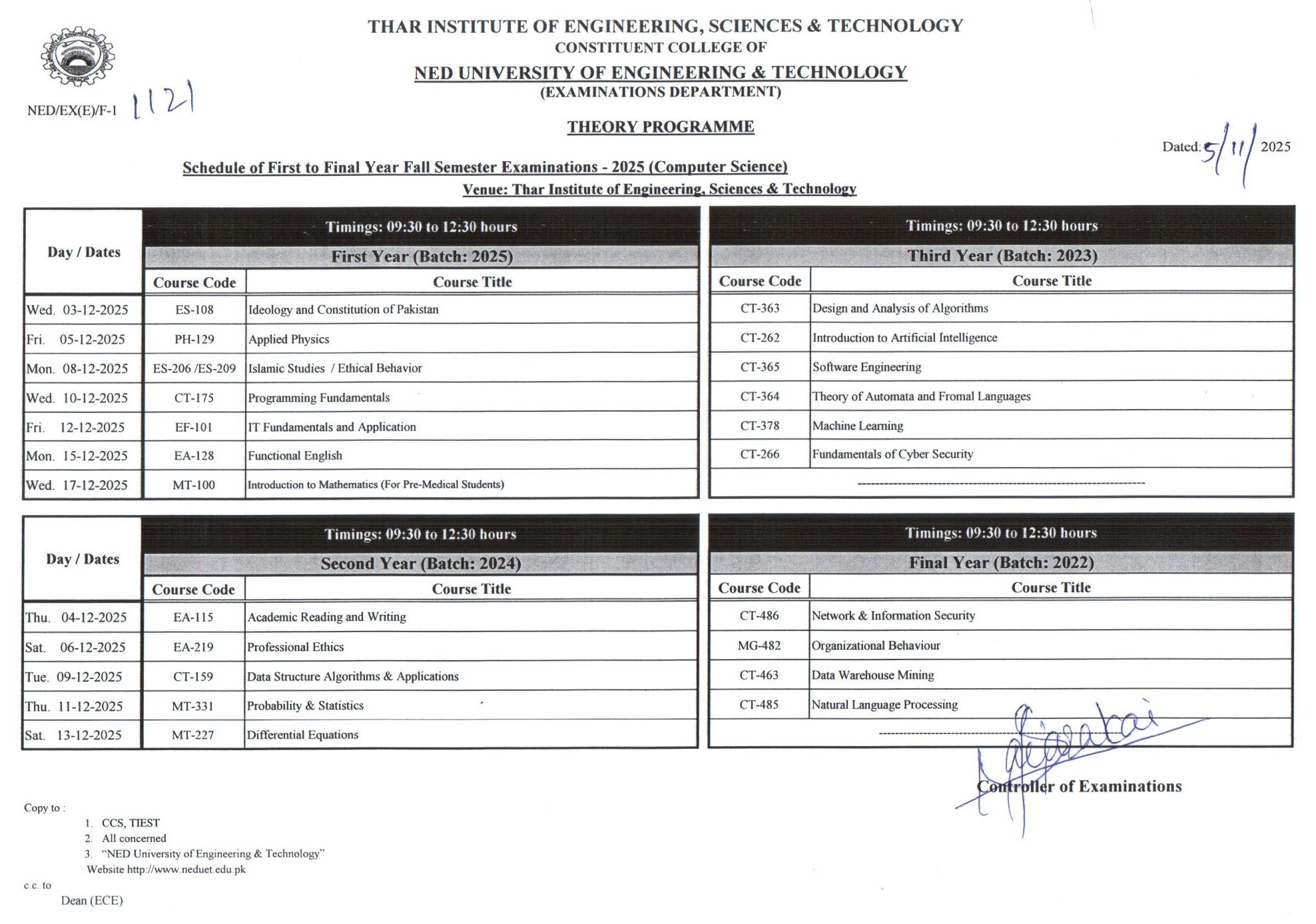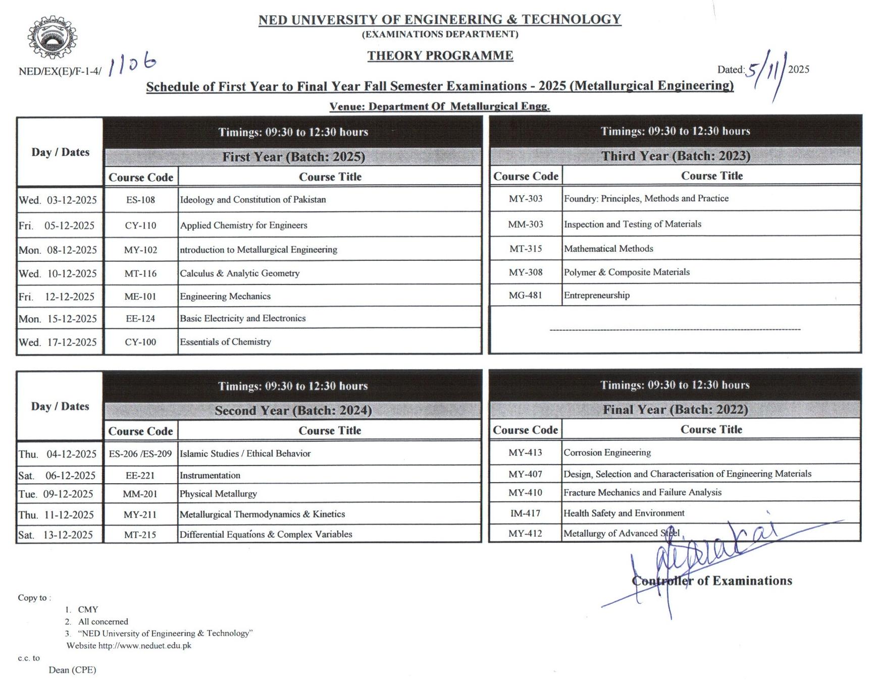 | UIT – USMAN INSTITUTE OF TECHNOLOGY SCHEDULES (SUMMER SESSION EXAMINATIONS 2025) |