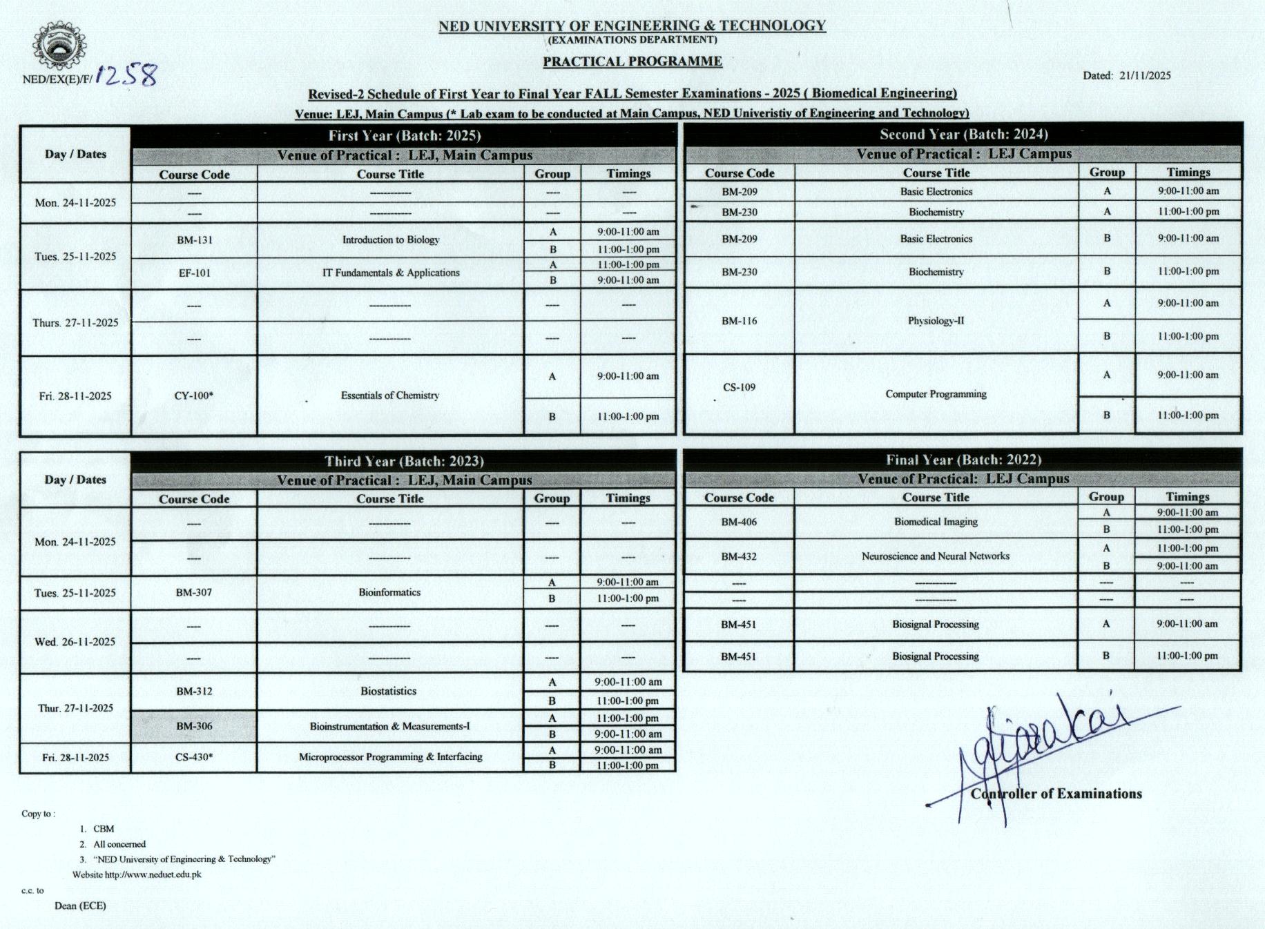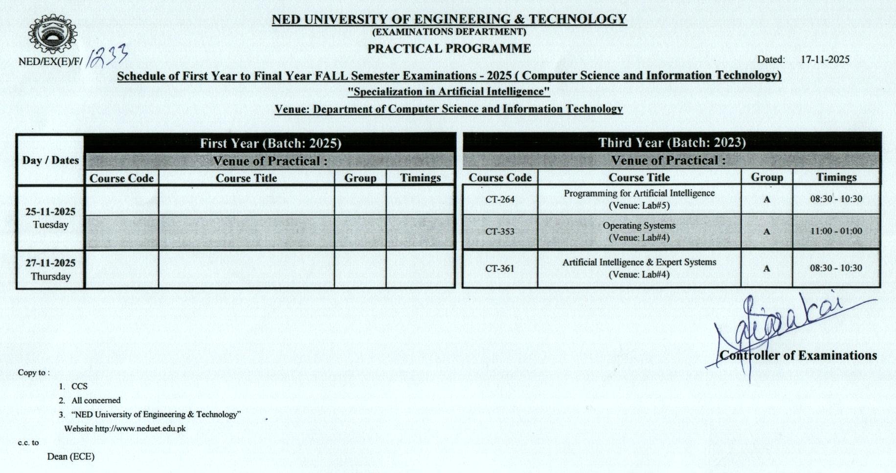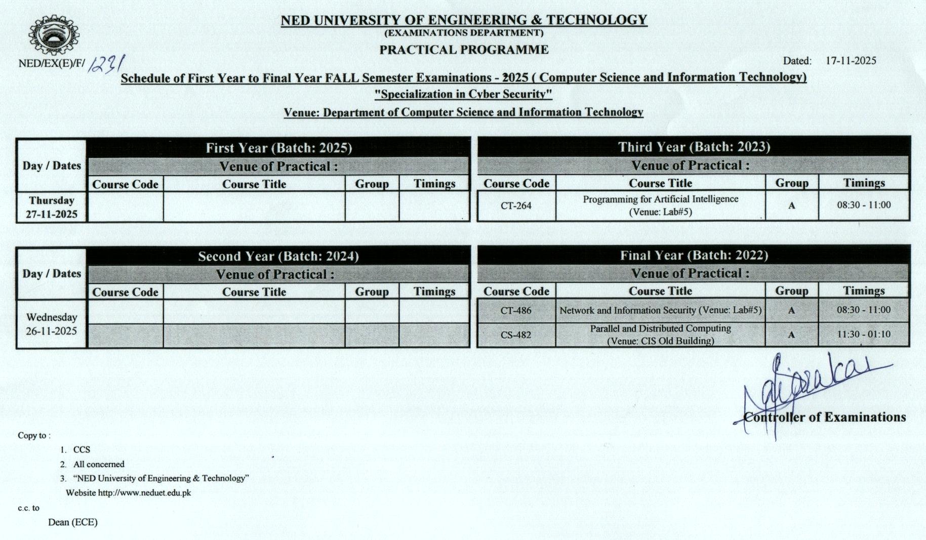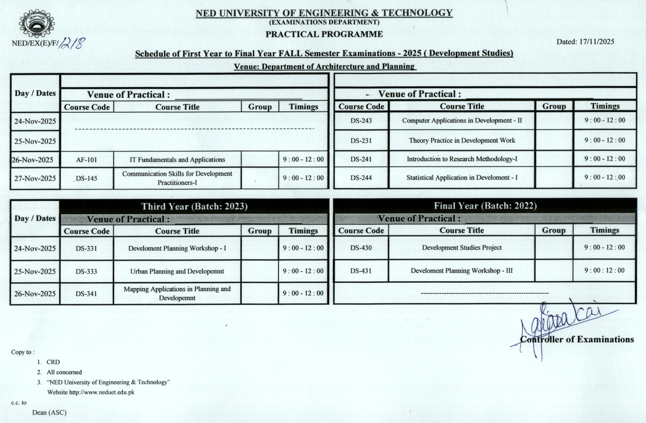 - Undergraduate - Clash Schedule of Fall Semester Examinations - 2025
