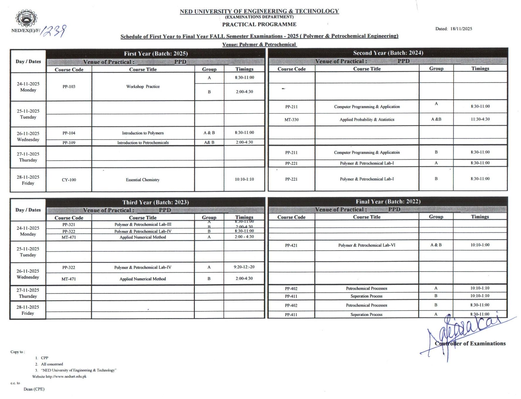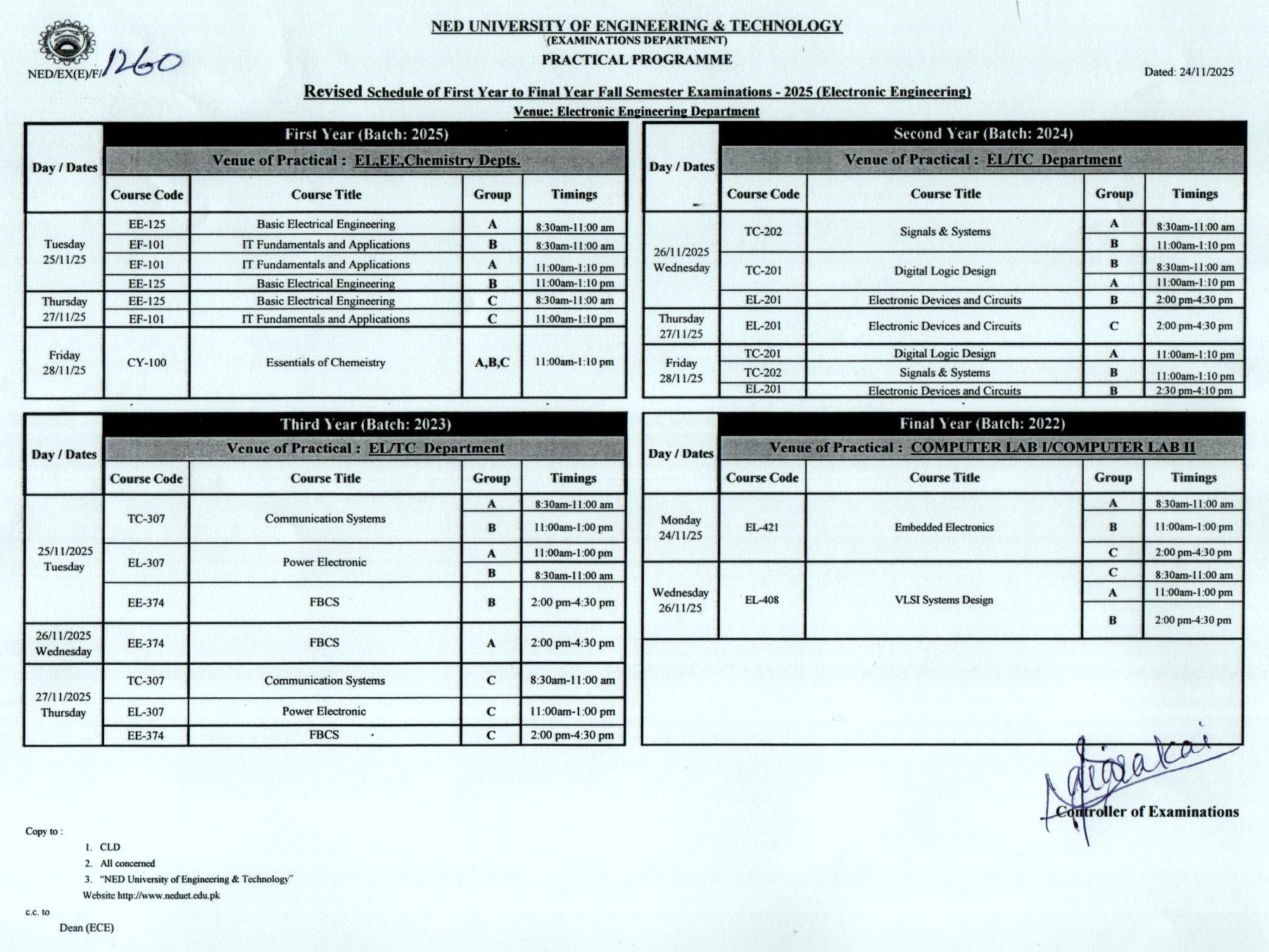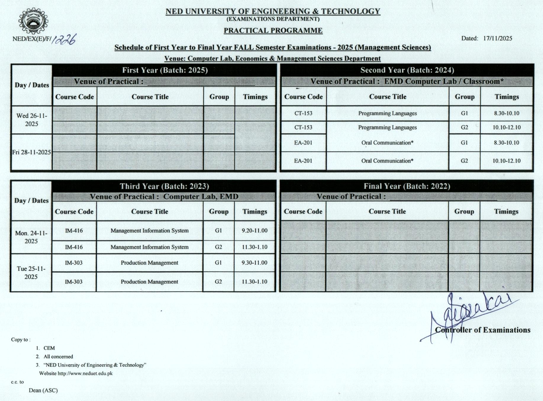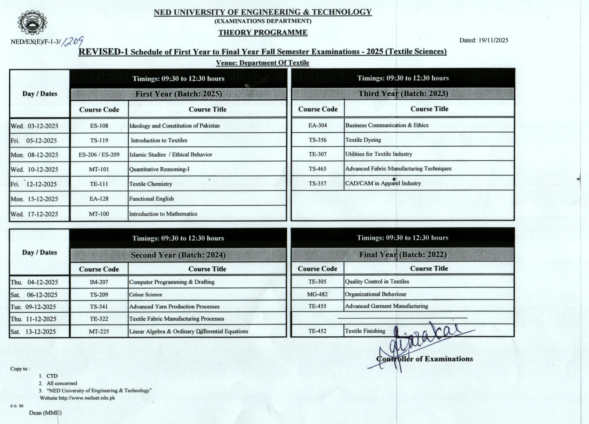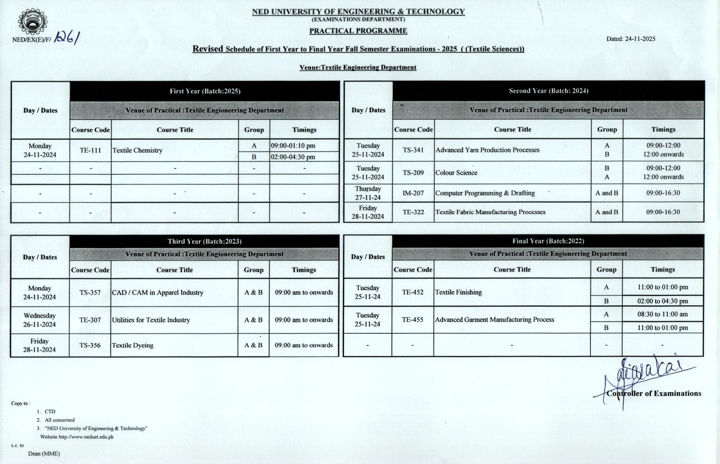 - Undergraduate - Clash Schedule of Fall Semester Examinations - 2025