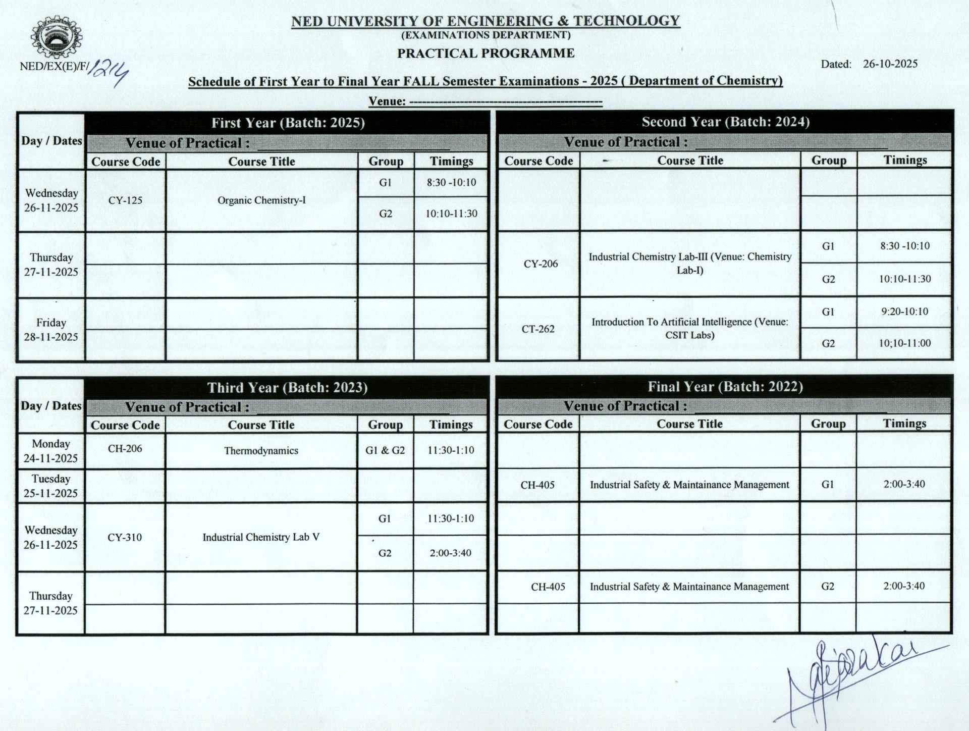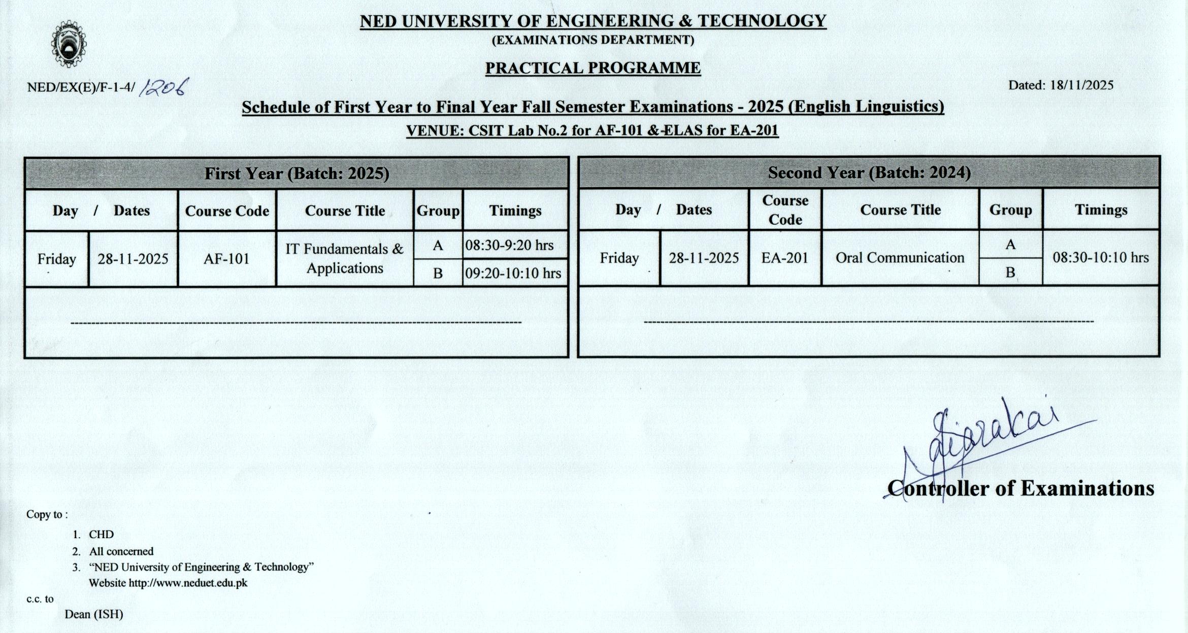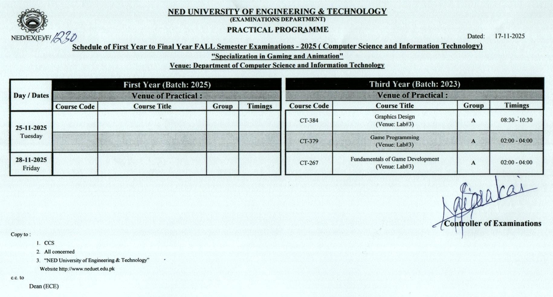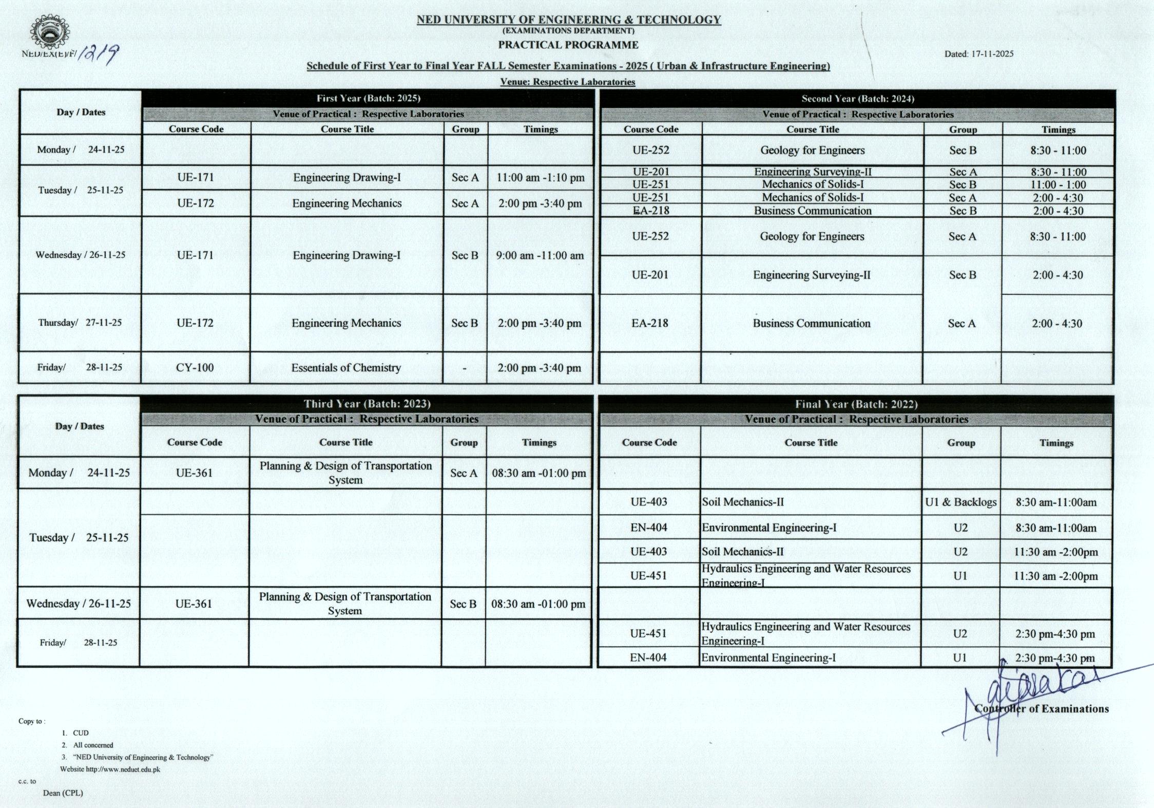 | UNDERGRADUATE SCHEDULES (FALL SEMESTER EXAMINATION 2025) |