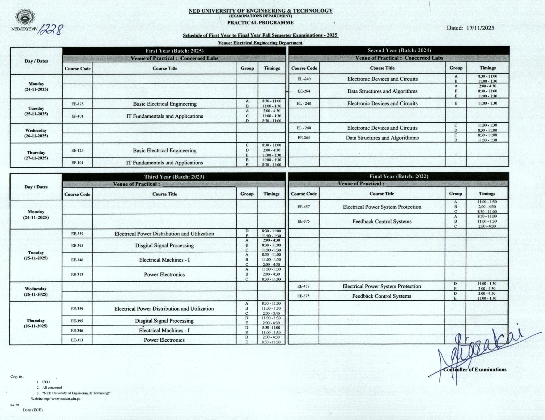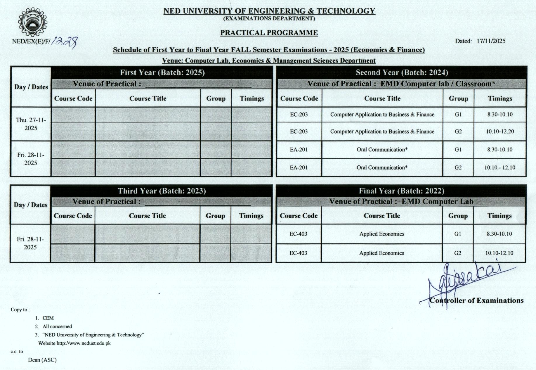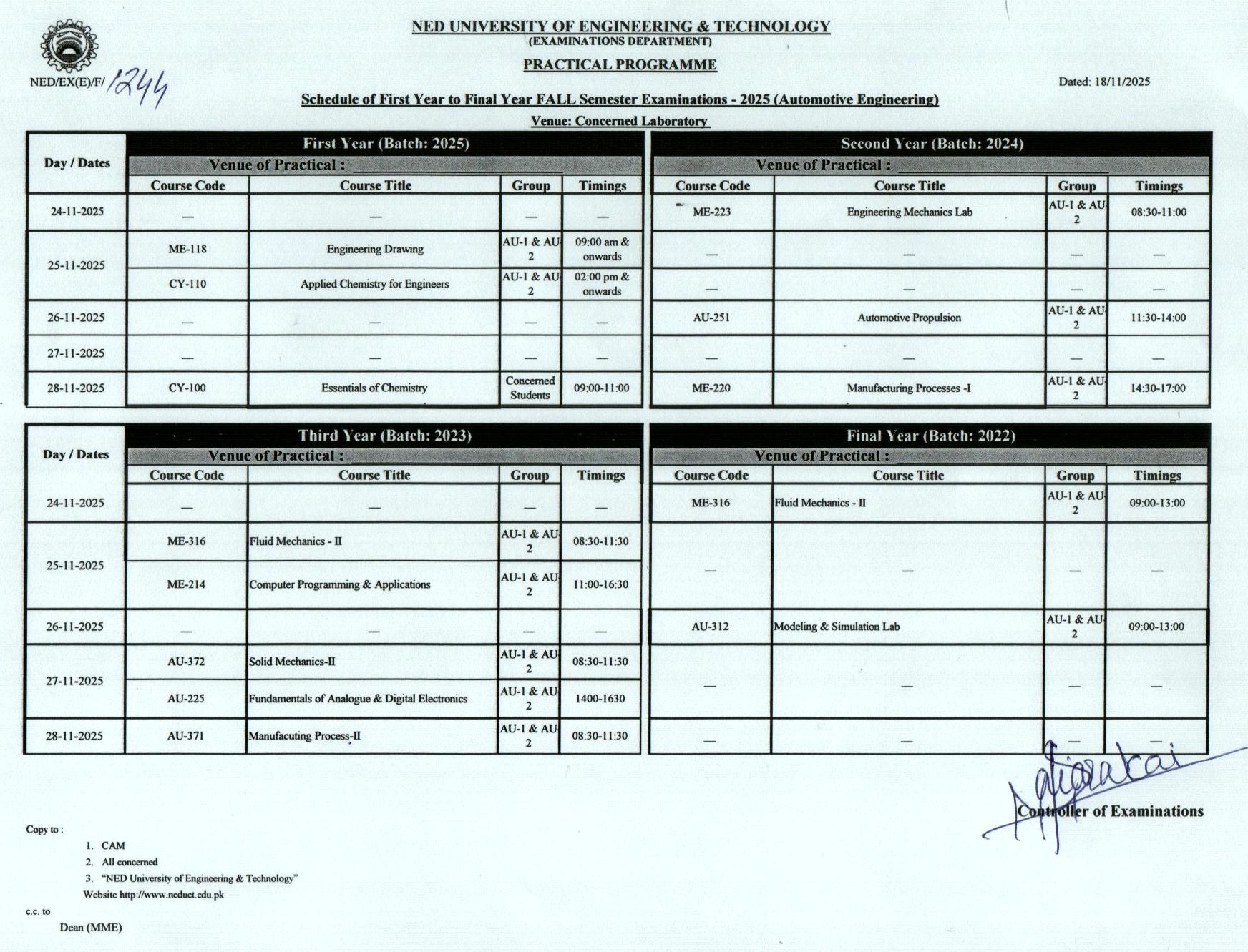 | UNDERGRADUATE SCHEDULES (FALL SEMESTER EXAMINATION 2025) |