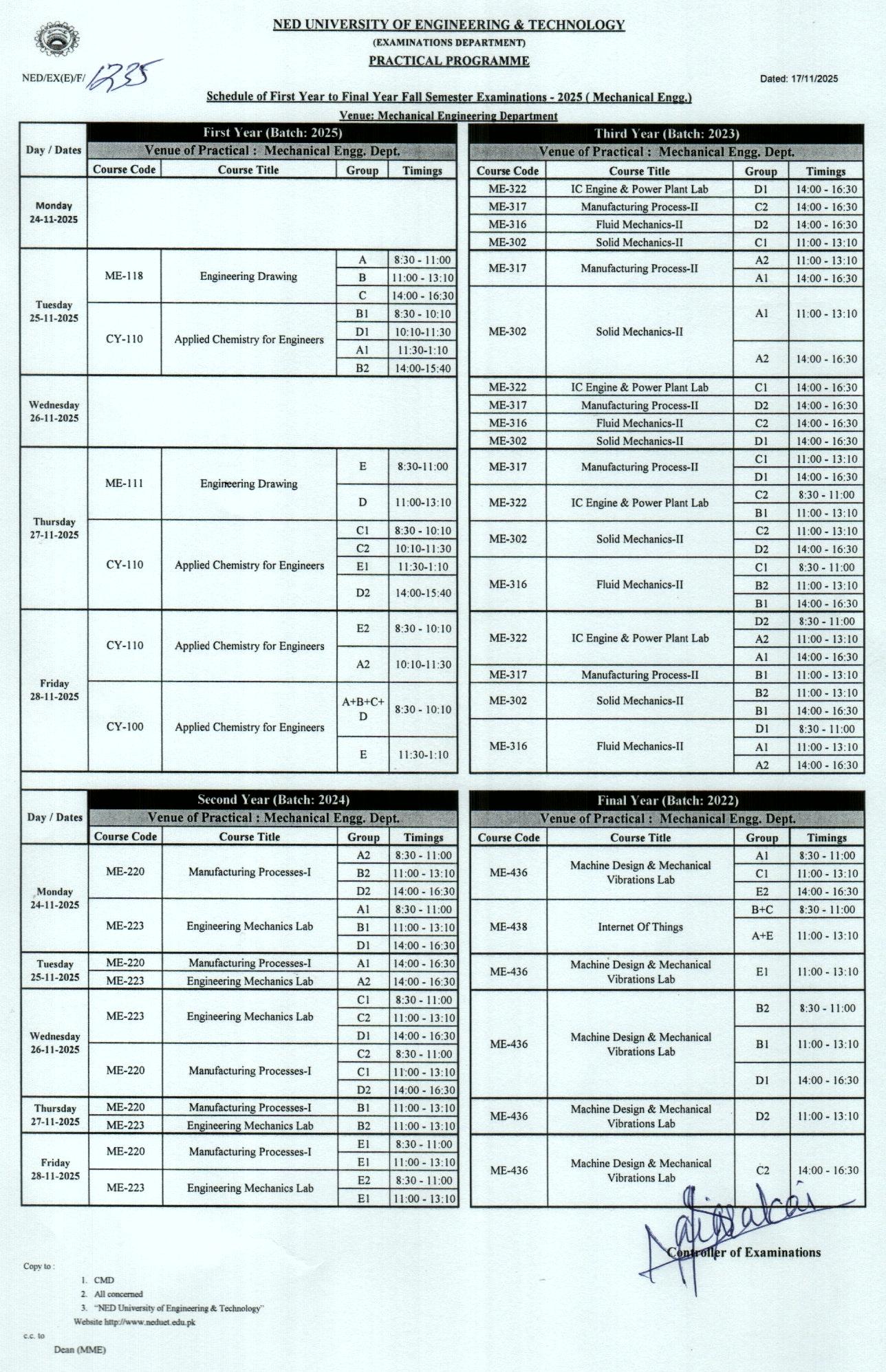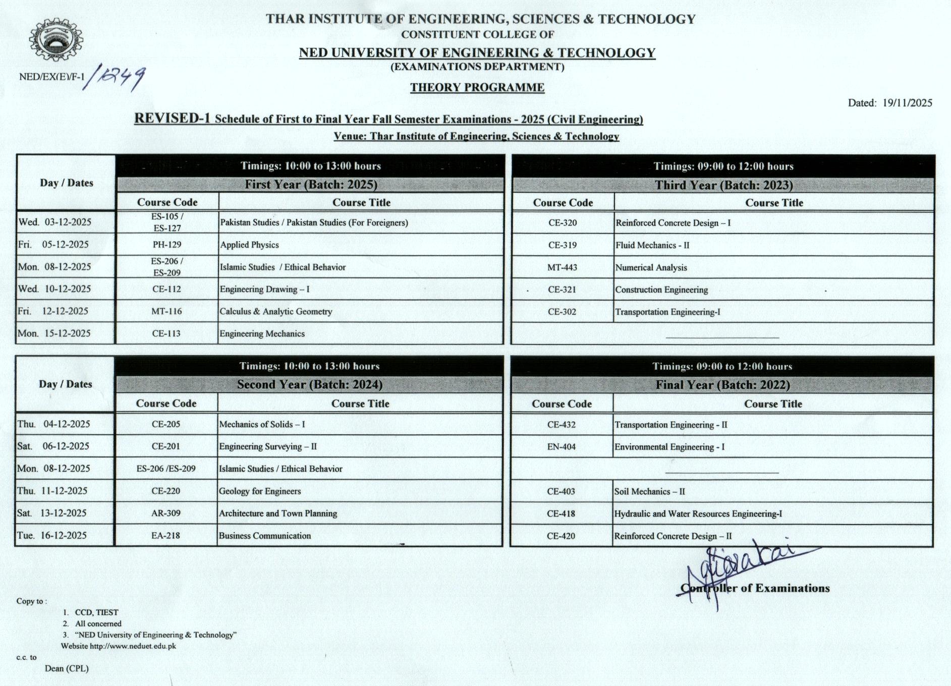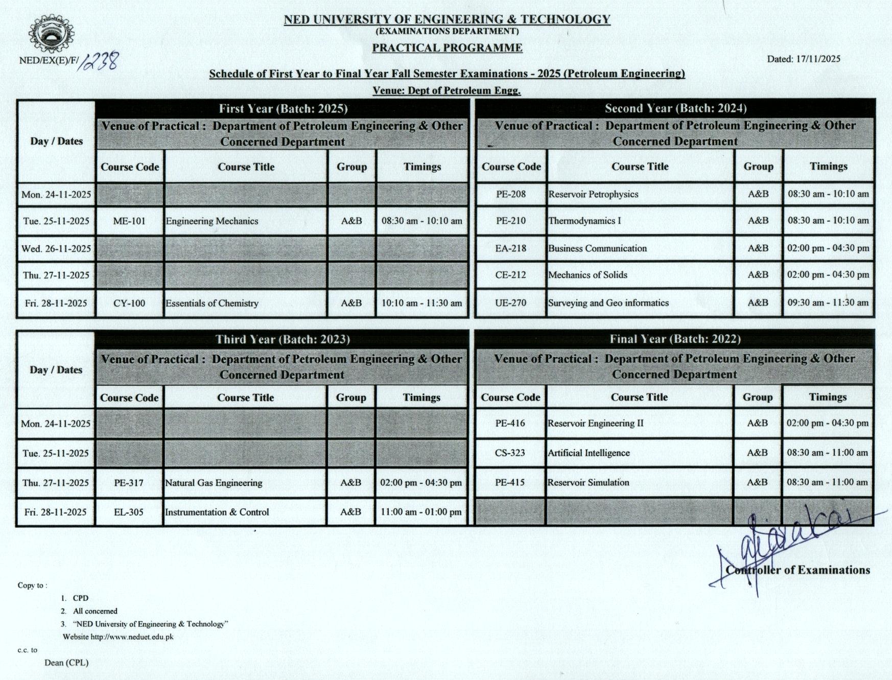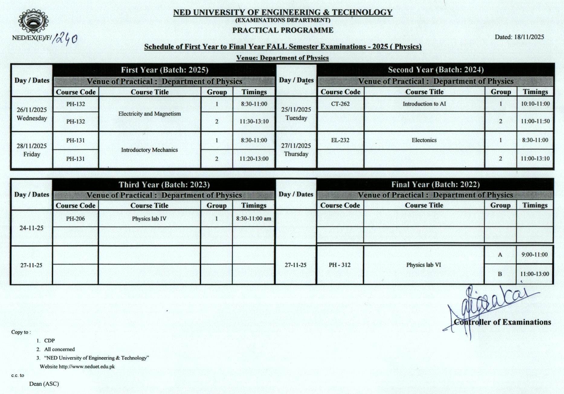 | UNDERGRADUATE SCHEDULES (FALL SEMESTER EXAMINATION 2025) |