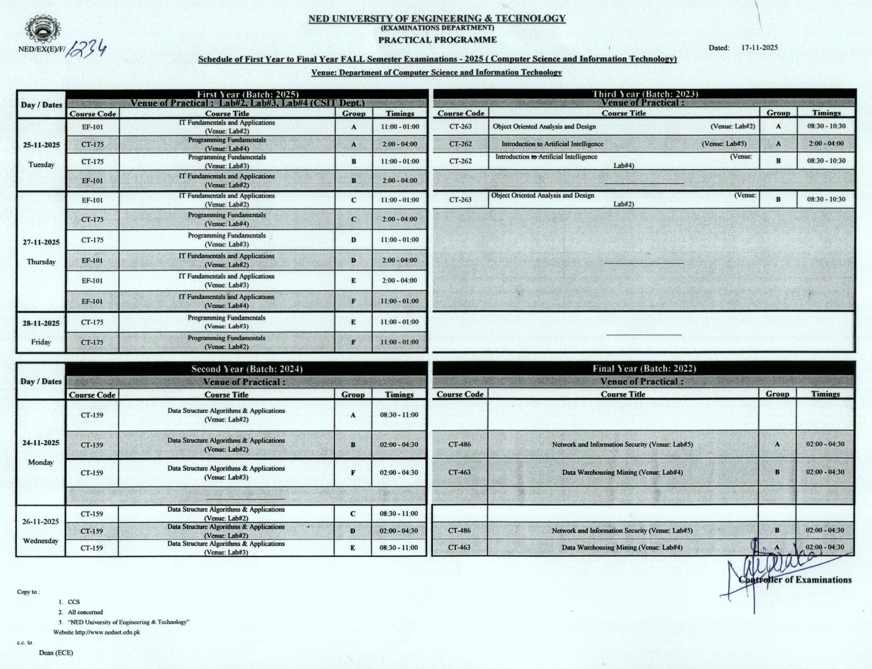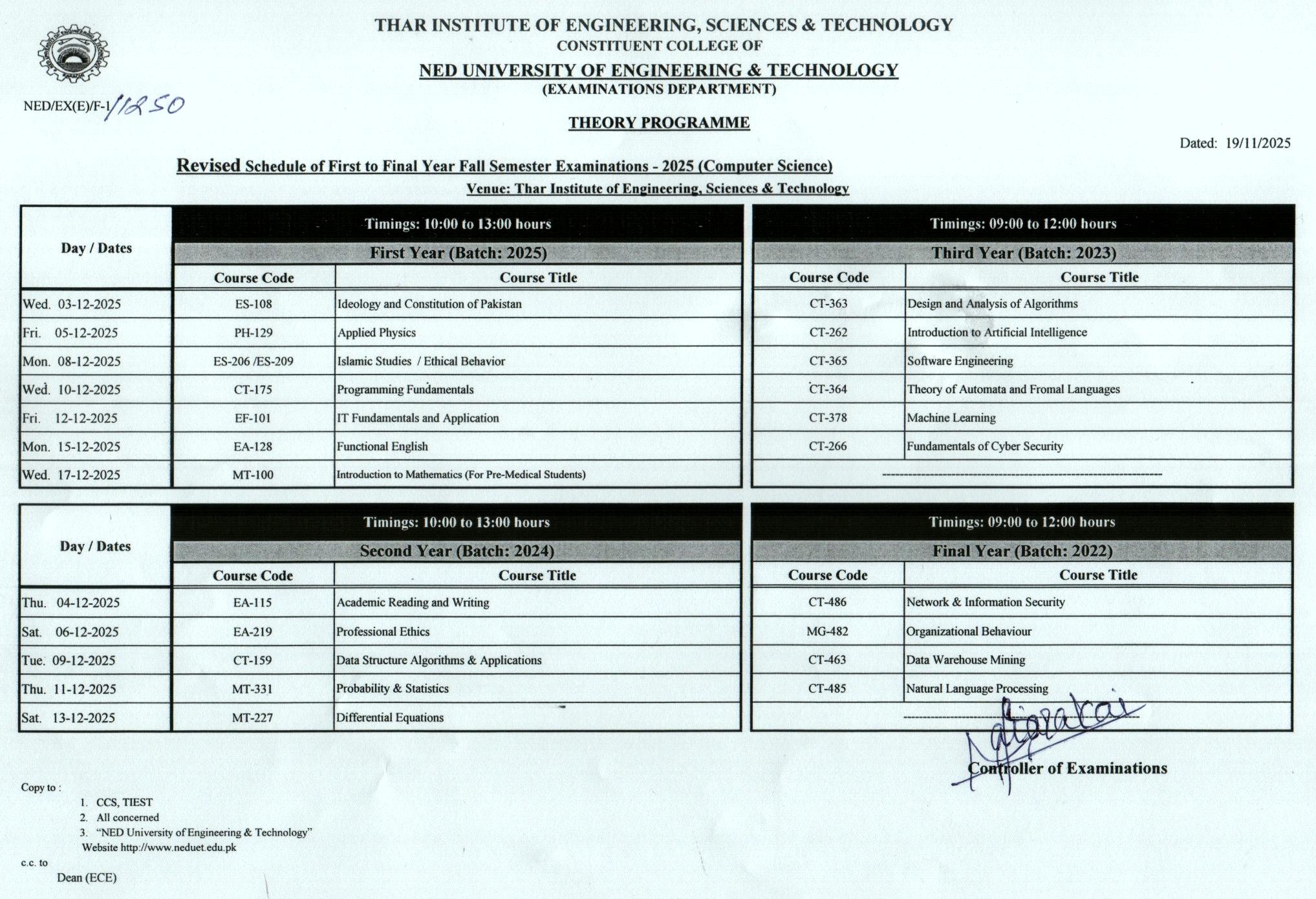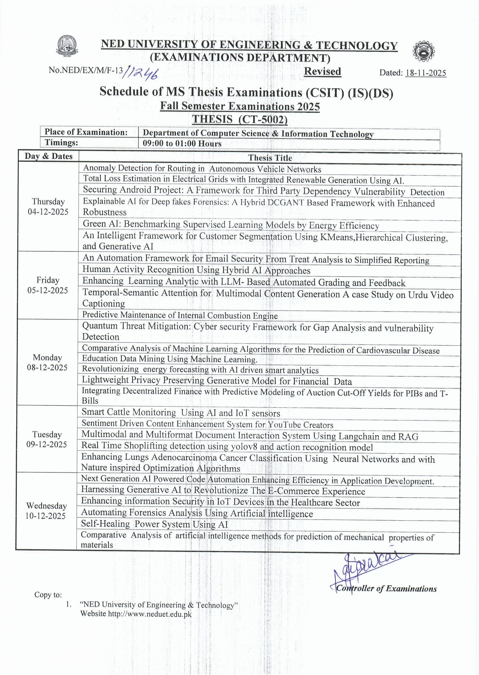 | UIT – USMAN INSTITUTE OF TECHNOLOGY SCHEDULES (SUMMER SESSION EXAMINATIONS 2025) |