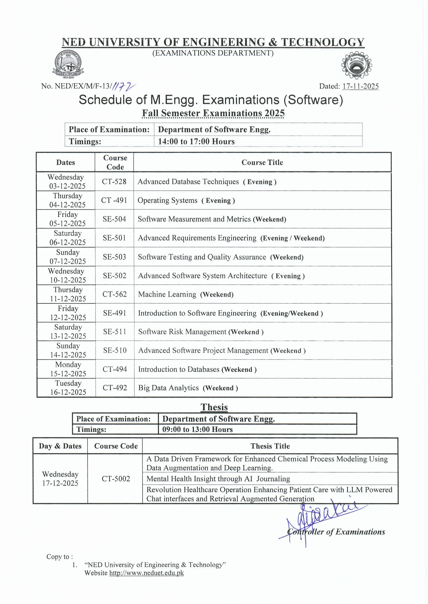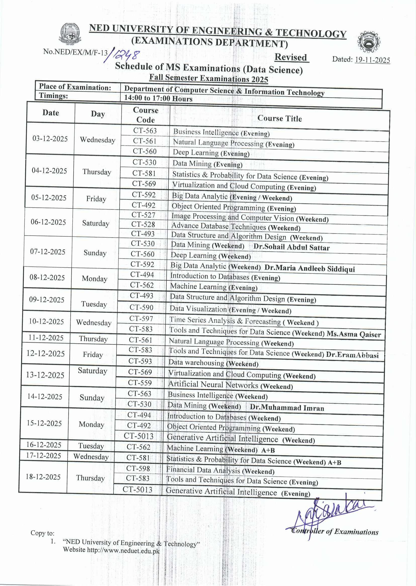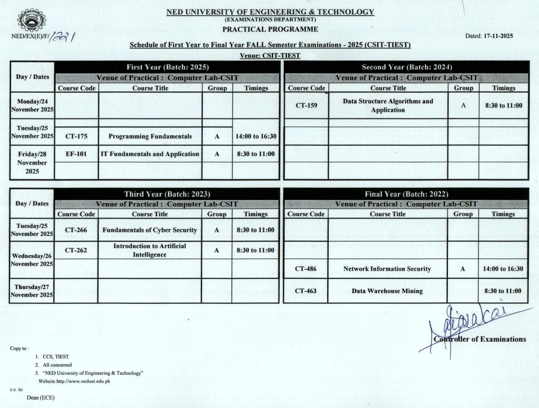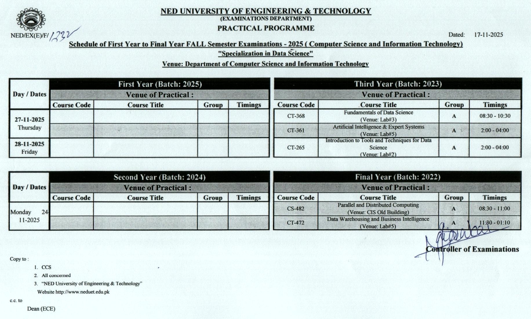 | UIT – USMAN INSTITUTE OF TECHNOLOGY SCHEDULES (SUMMER SESSION EXAMINATIONS 2025) |