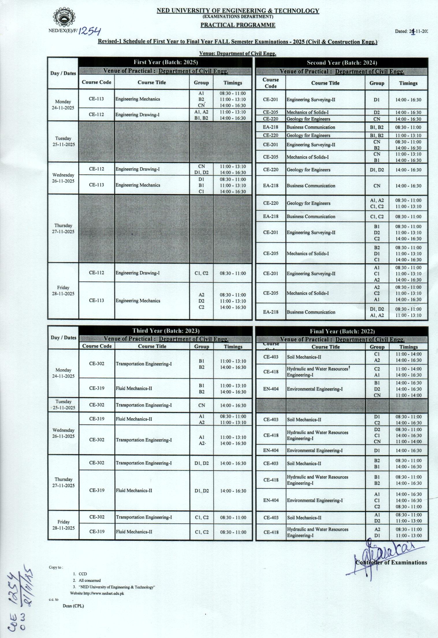 | Civil | - | - | Theory | Practical | Theory | Practical |