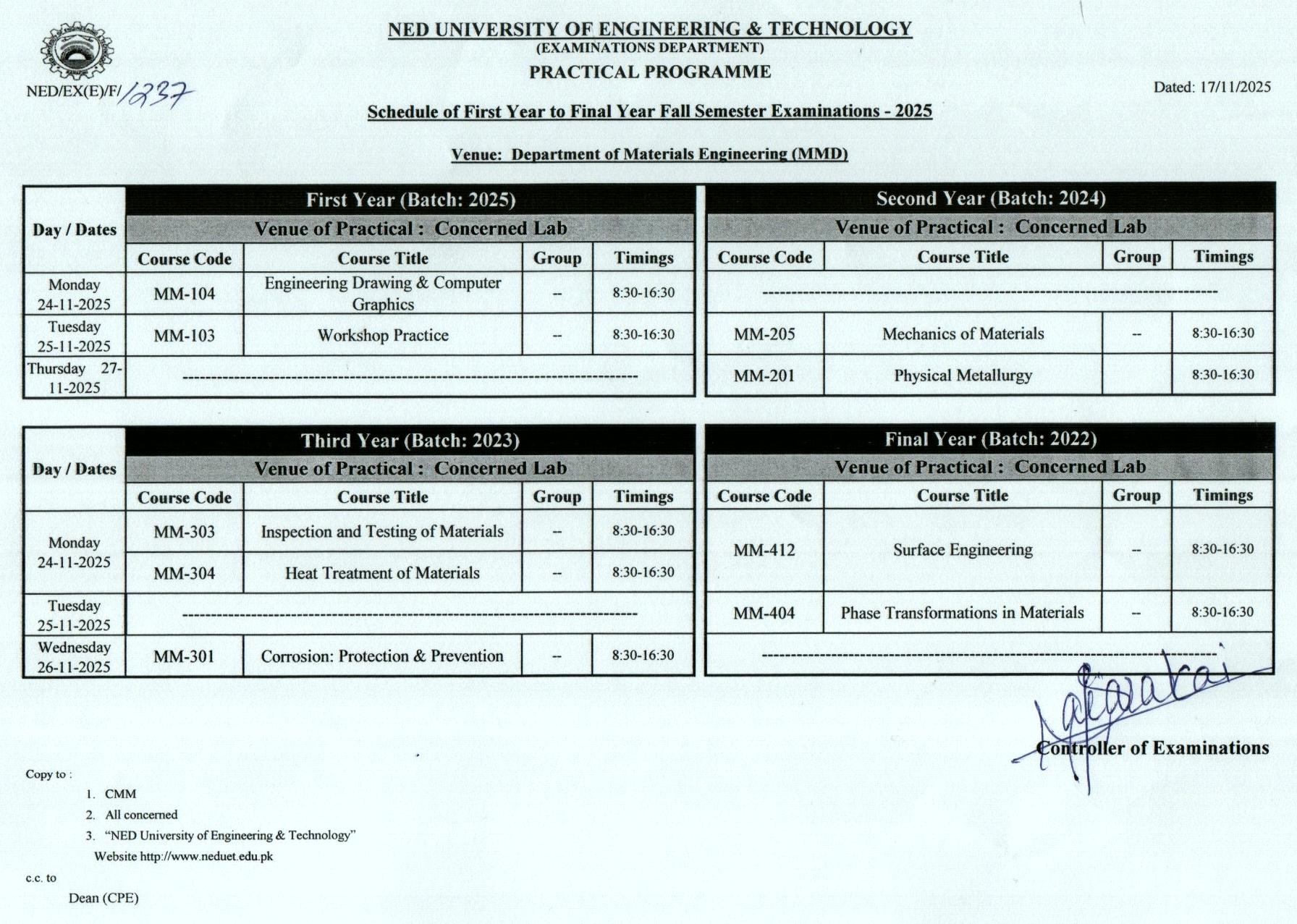 - Undergraduate - Press Release of Fall Semester Examinations - 2025