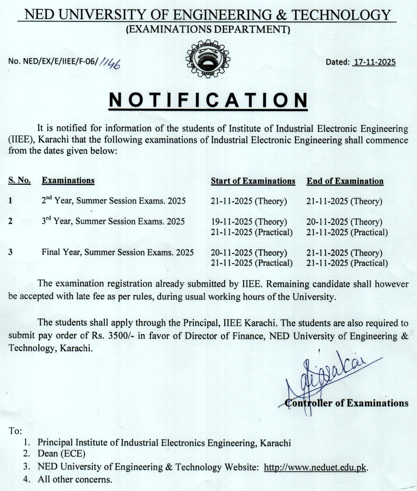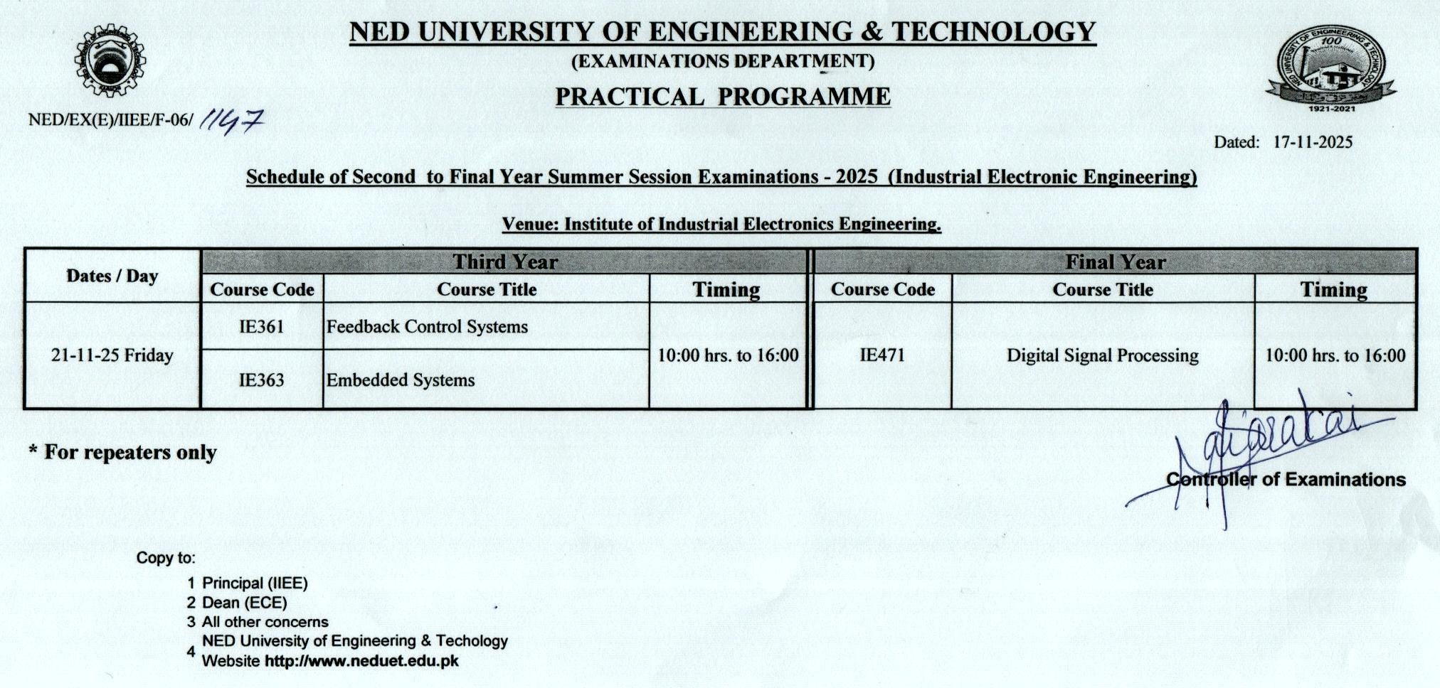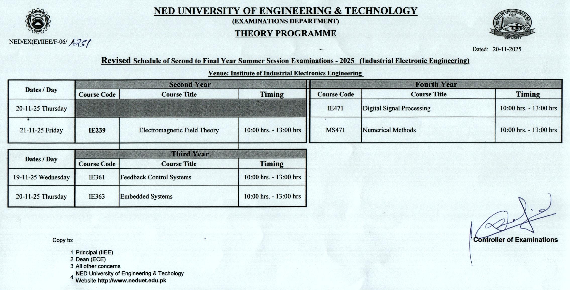 | IIEE – INSTITUTE OF INDUSTRIAL ELECTRONICS ENGINEERING SCHEDULES (SUMMER SESSION EXAMINATIONS 2025) |