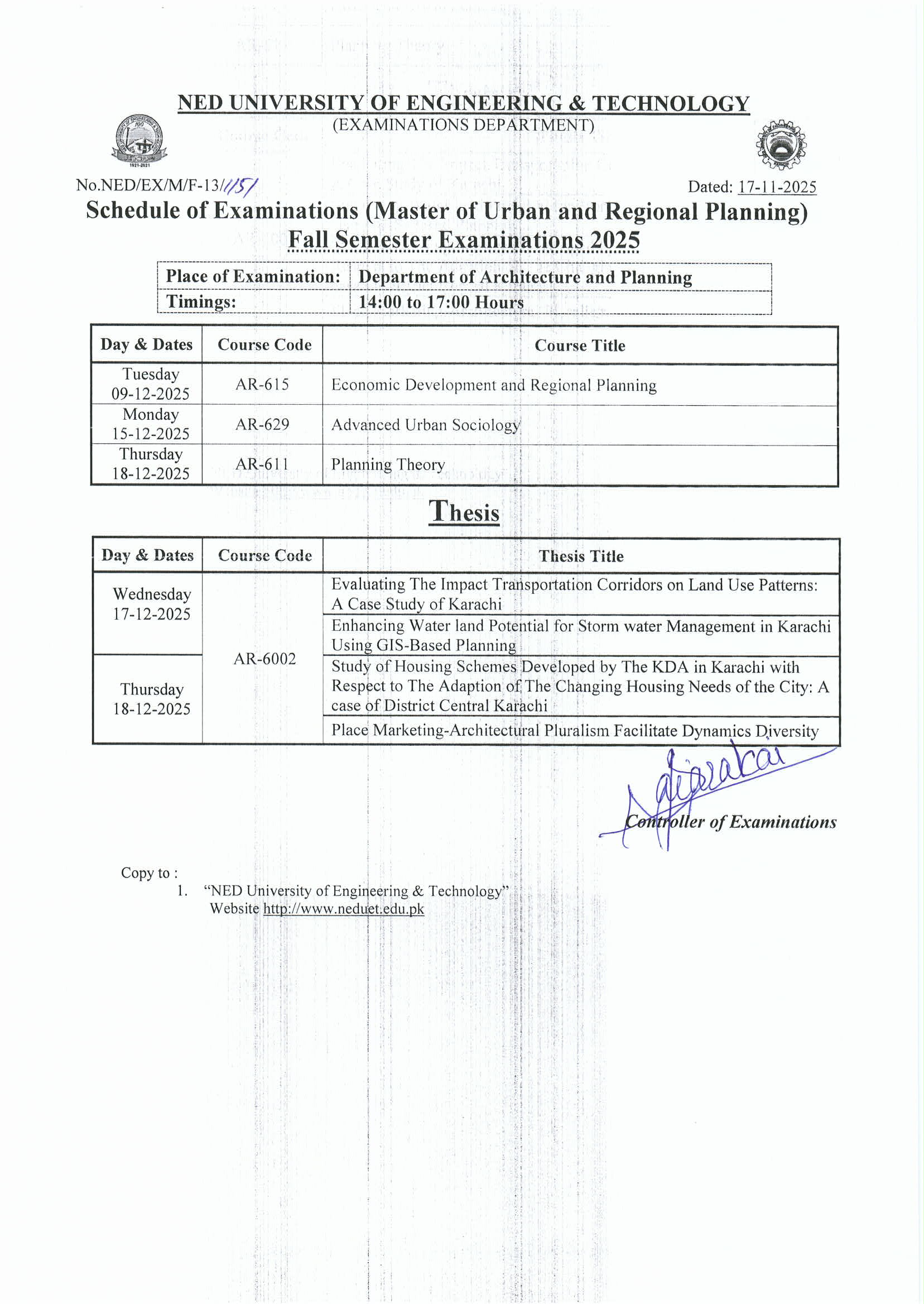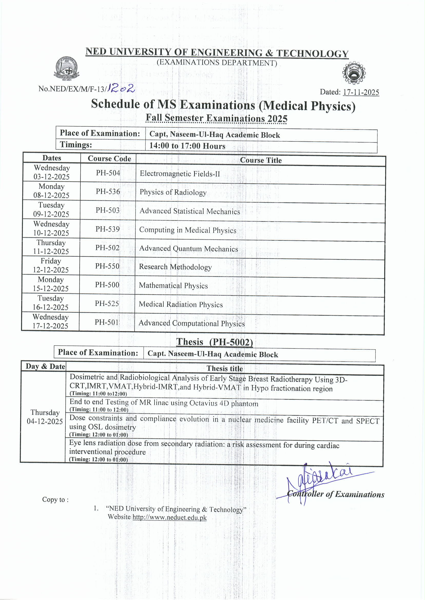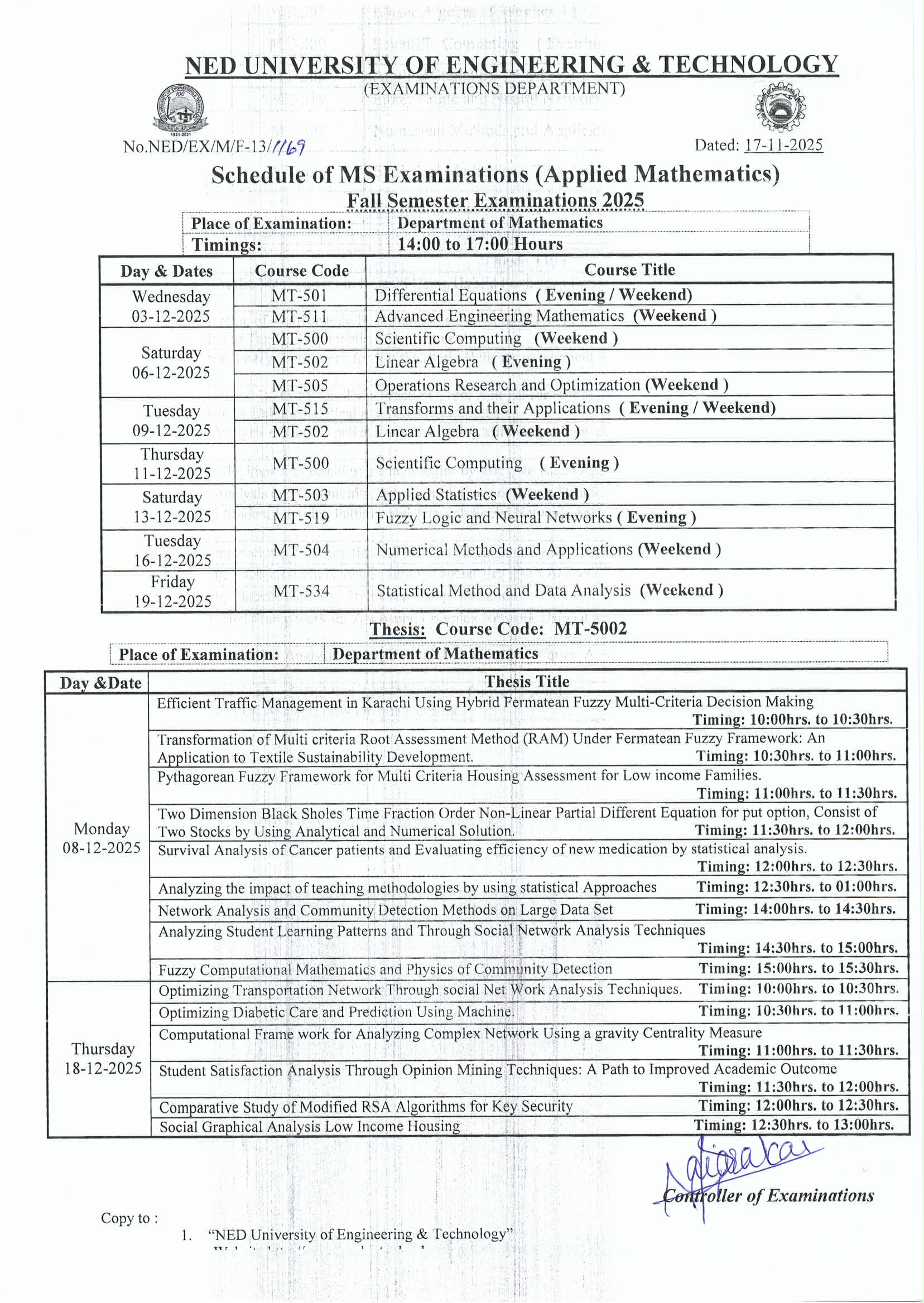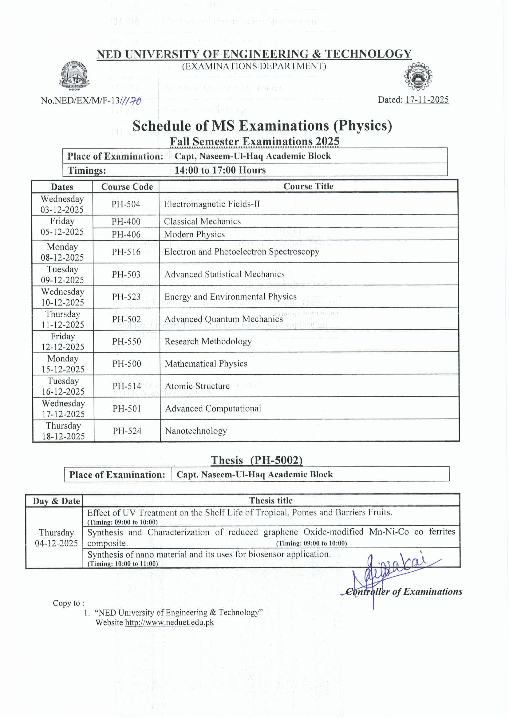 | POSTGRADUATE SCHEDULES (FALL SEMESTER EXAMINATIONS 2025) |