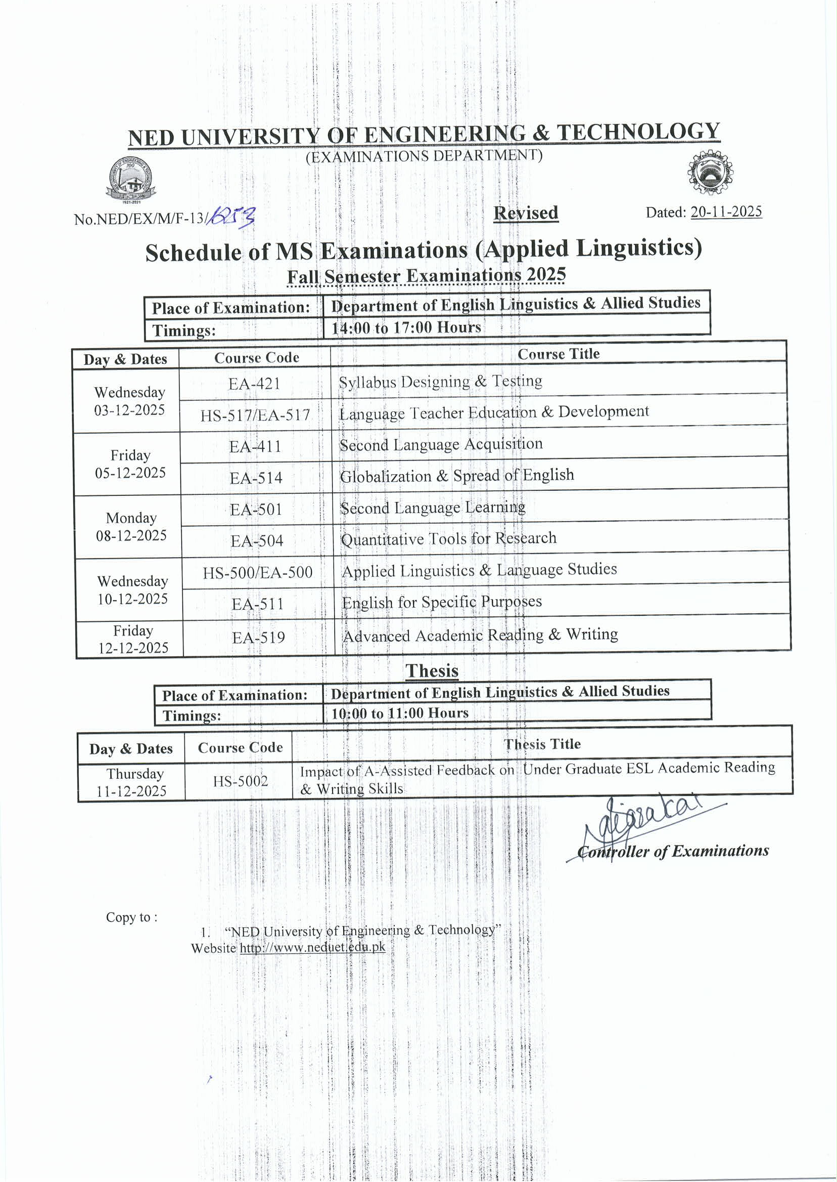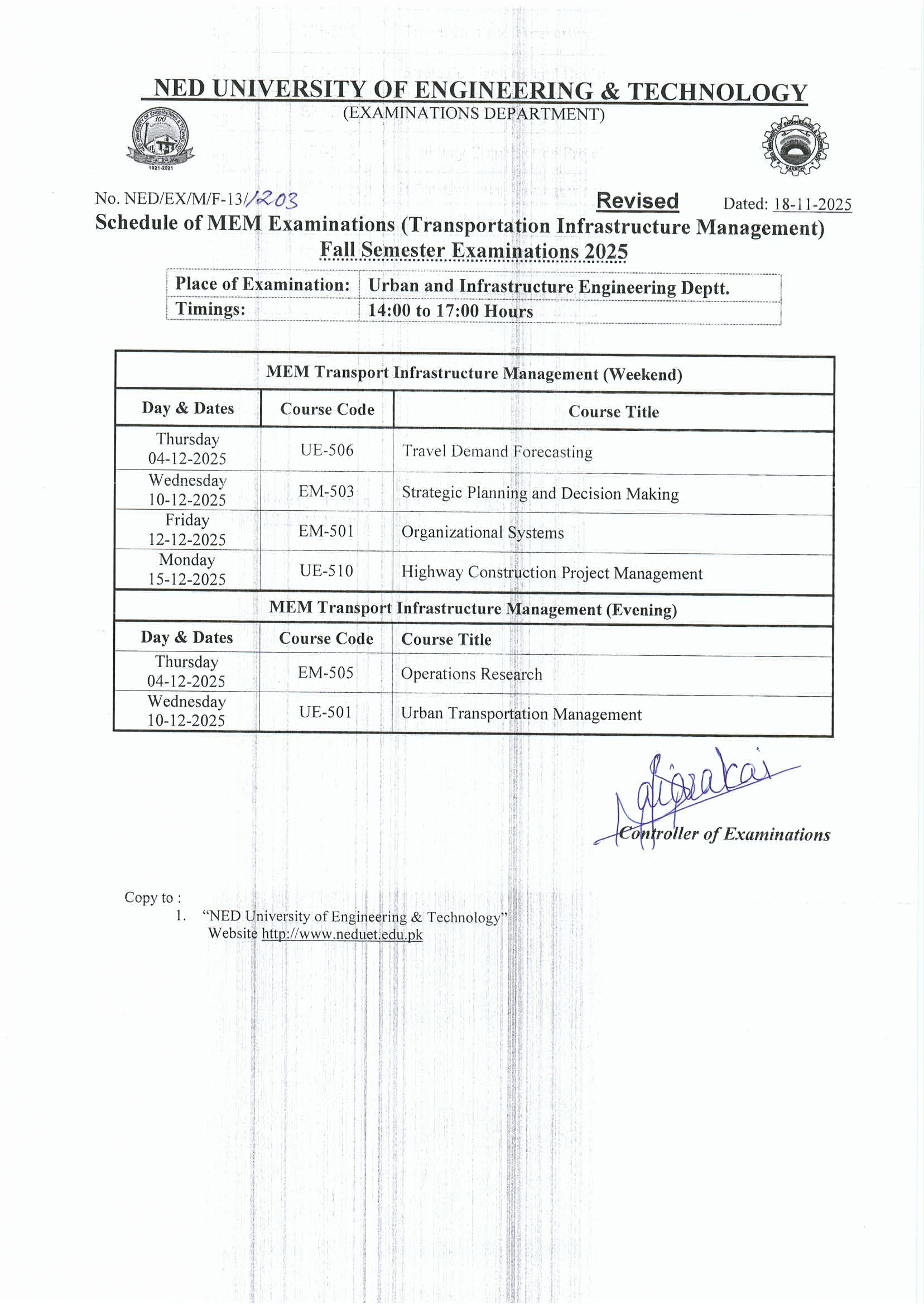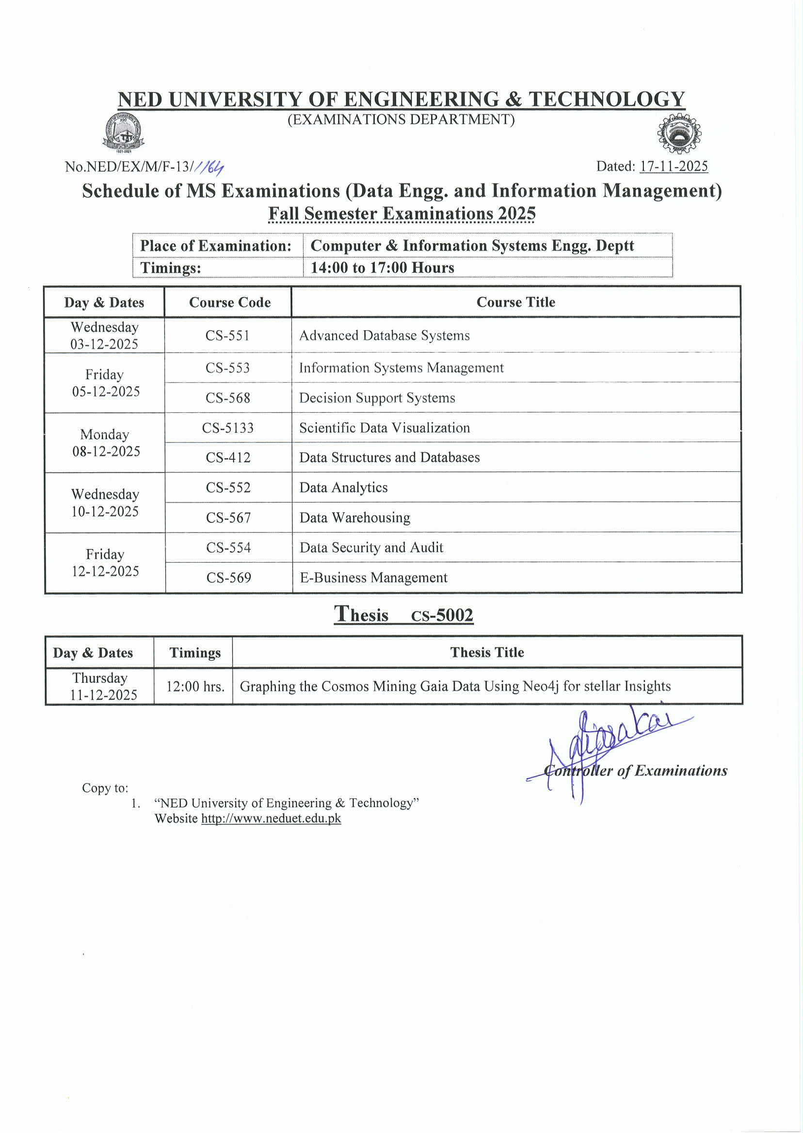 | POSTGRADUATE SCHEDULES (FALL SEMESTER EXAMINATIONS 2025) |