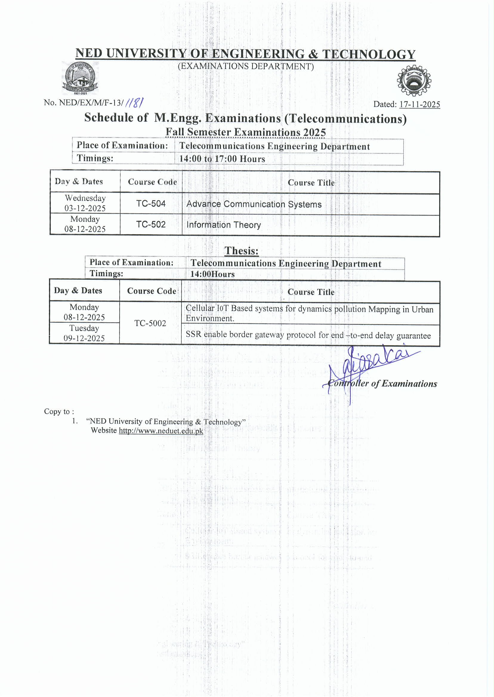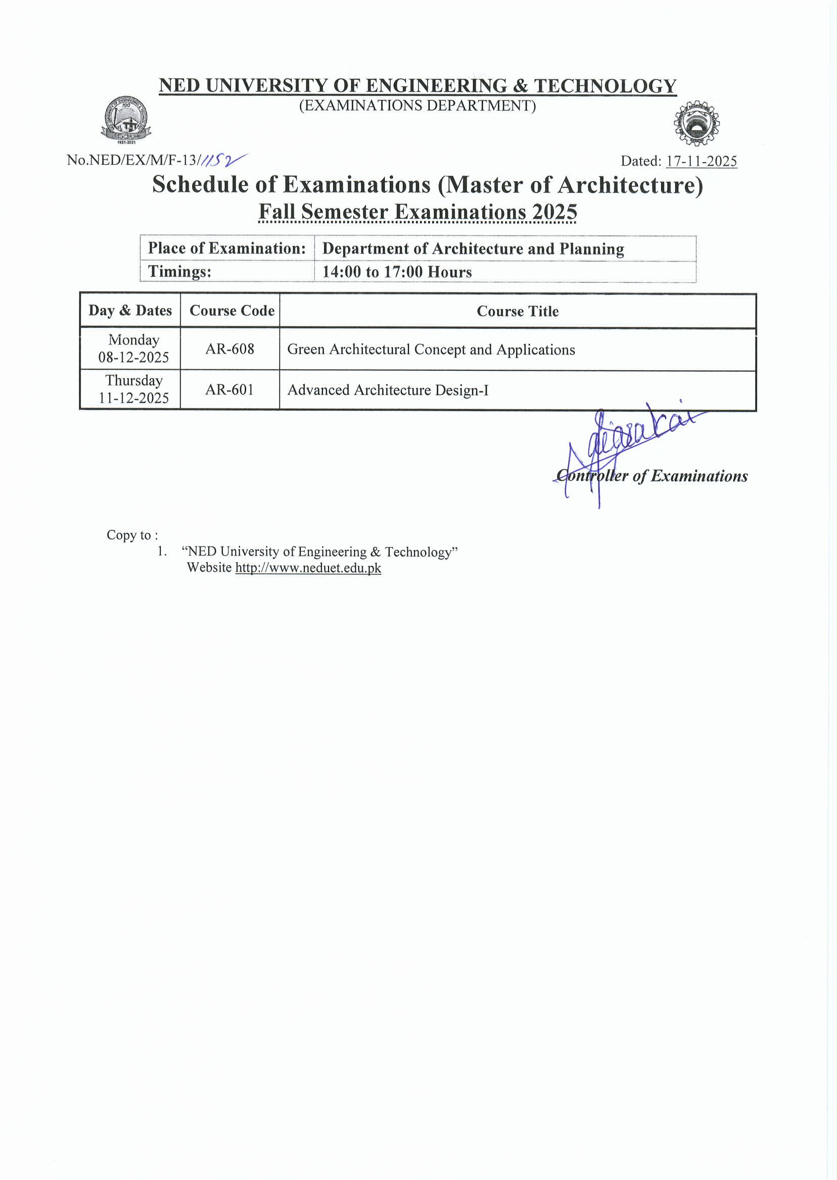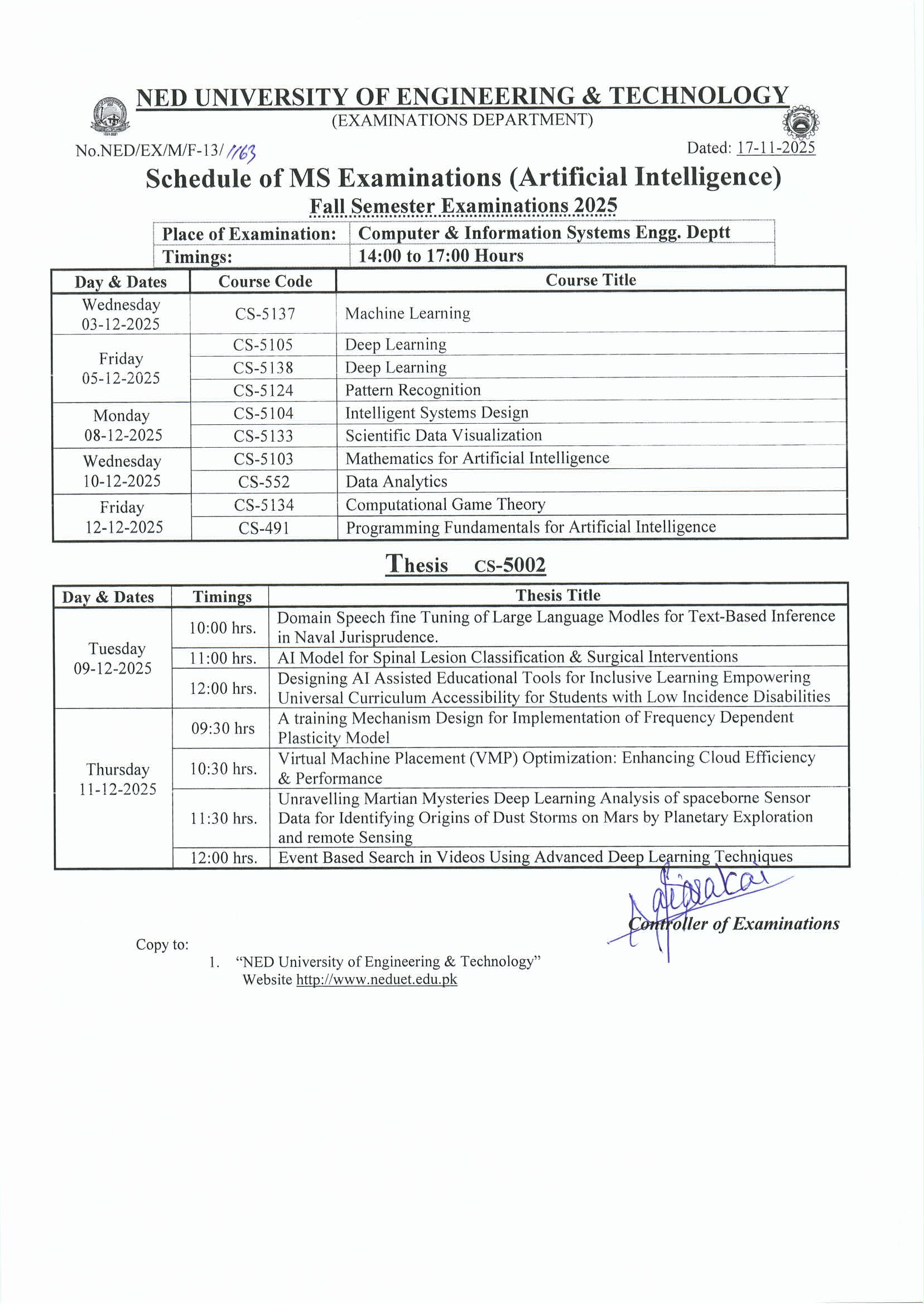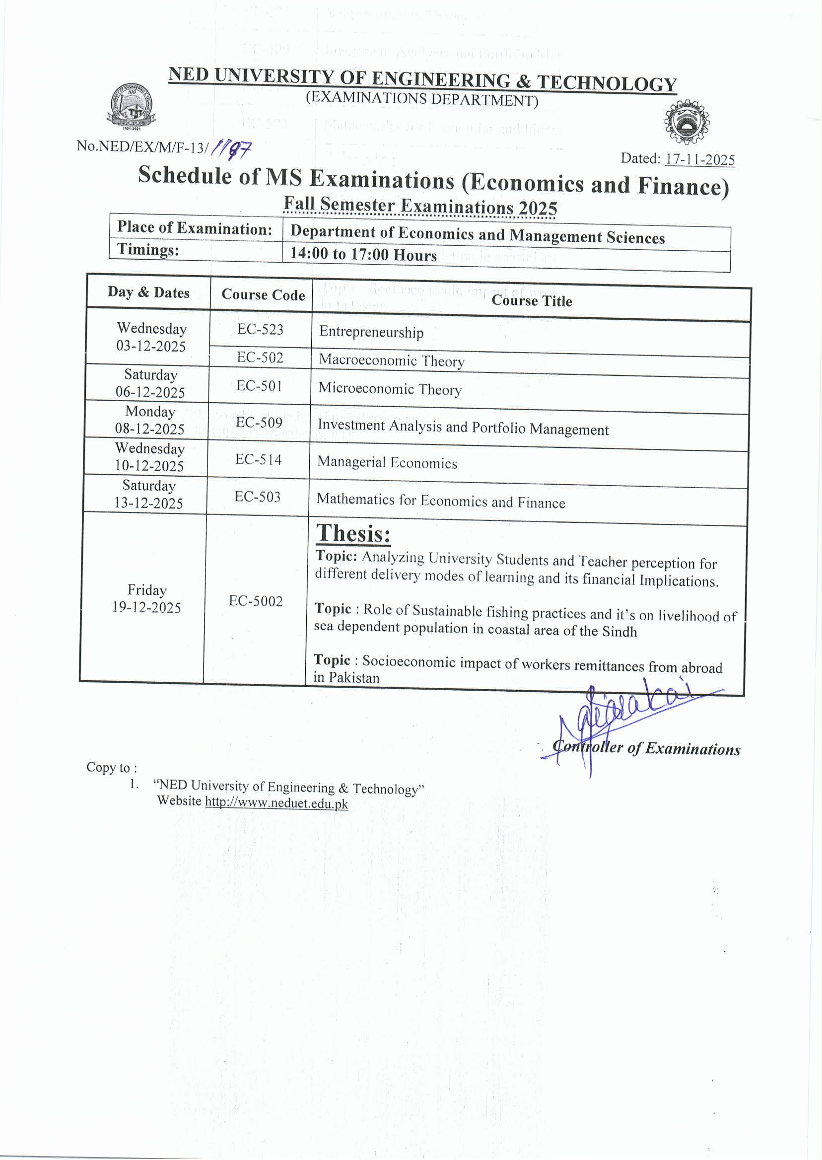 | POSTGRADUATE SCHEDULES (FALL SEMESTER EXAMINATIONS 2025) |