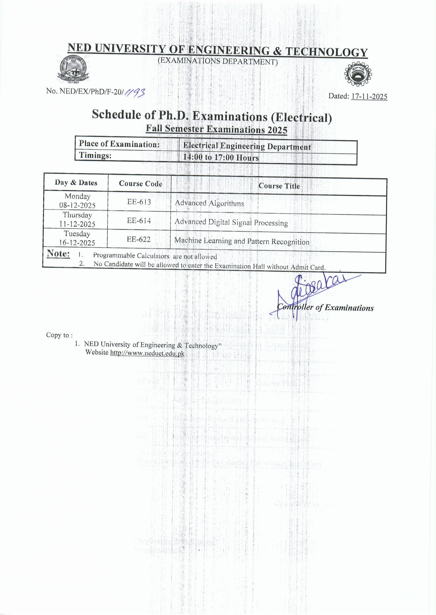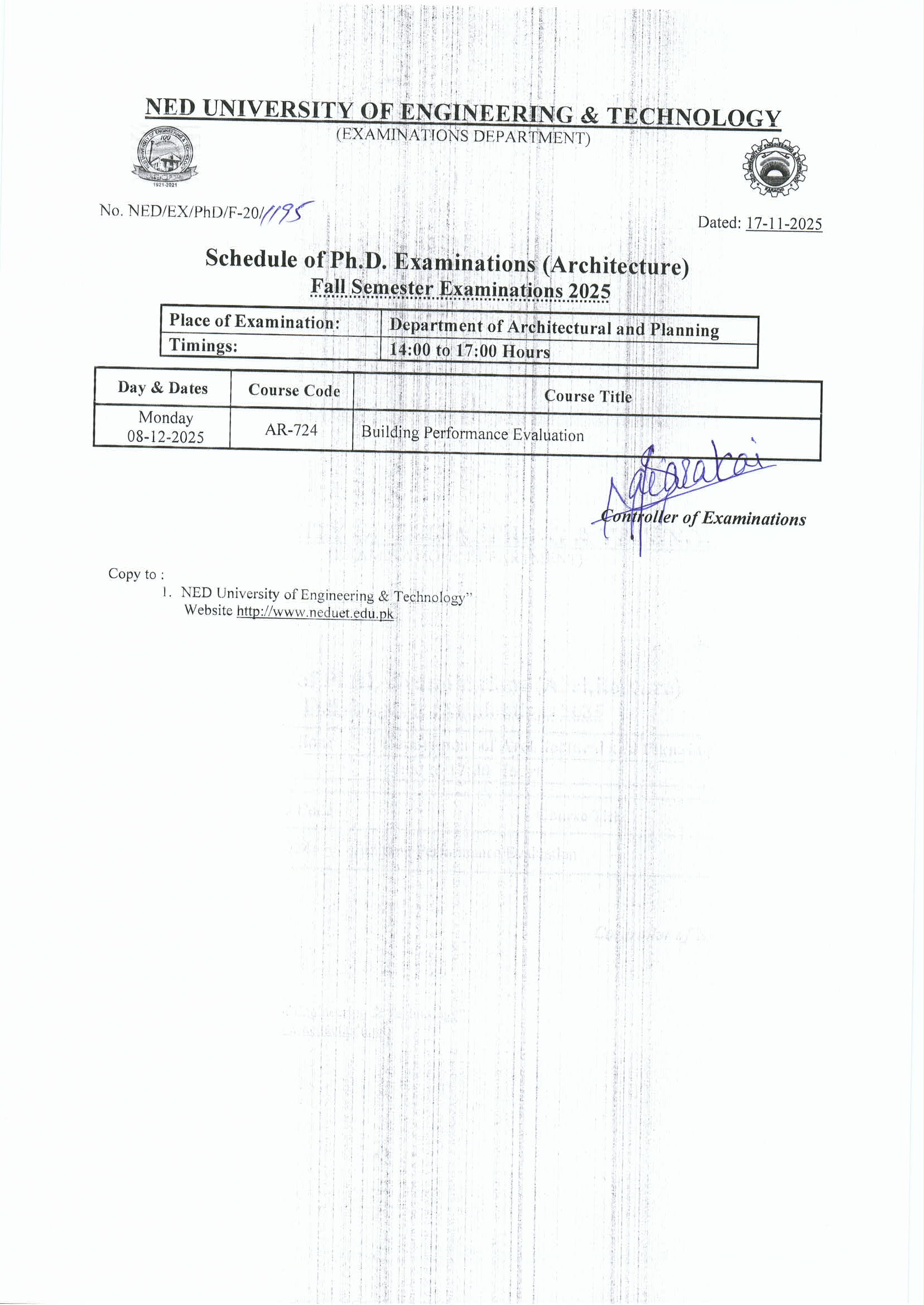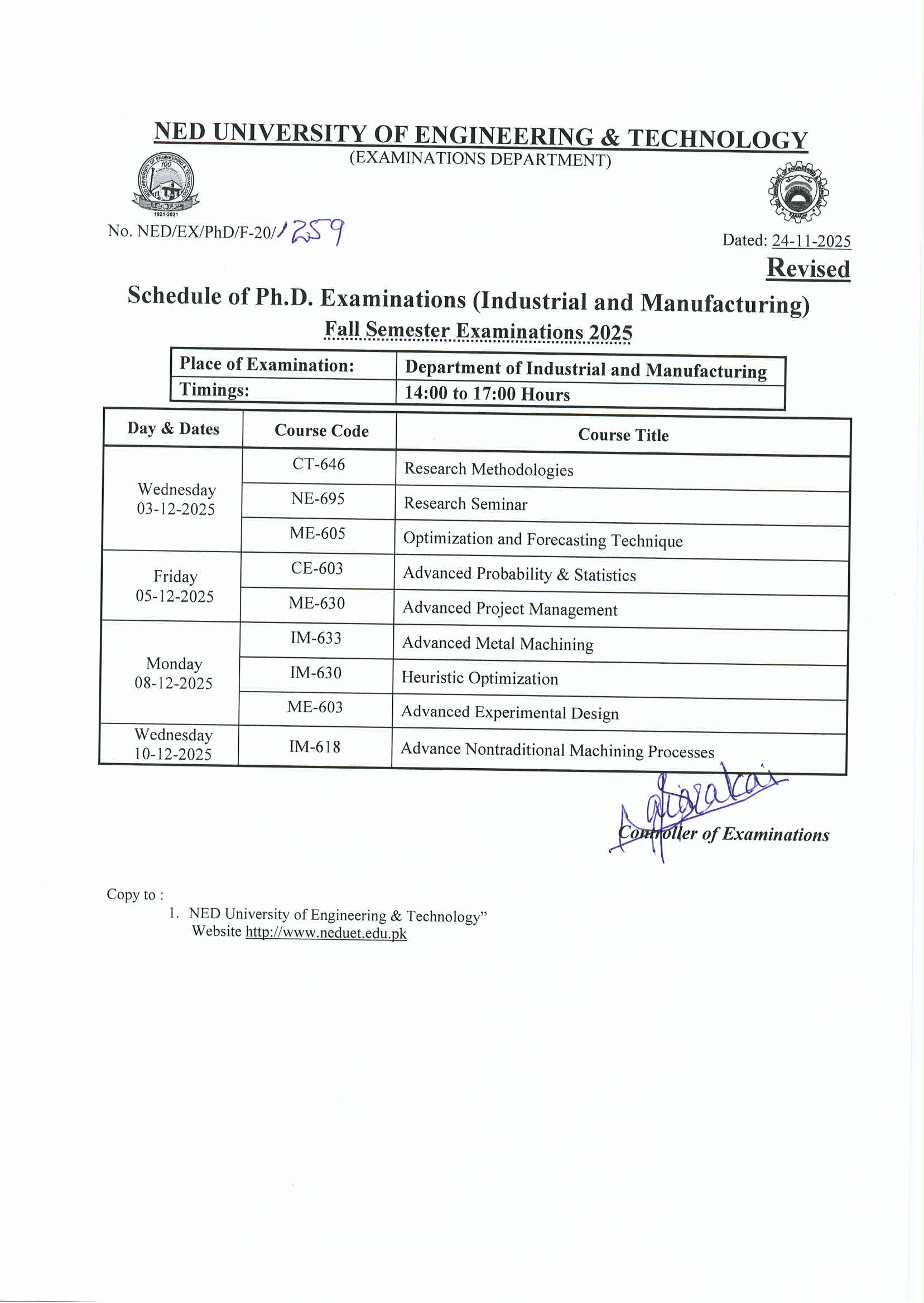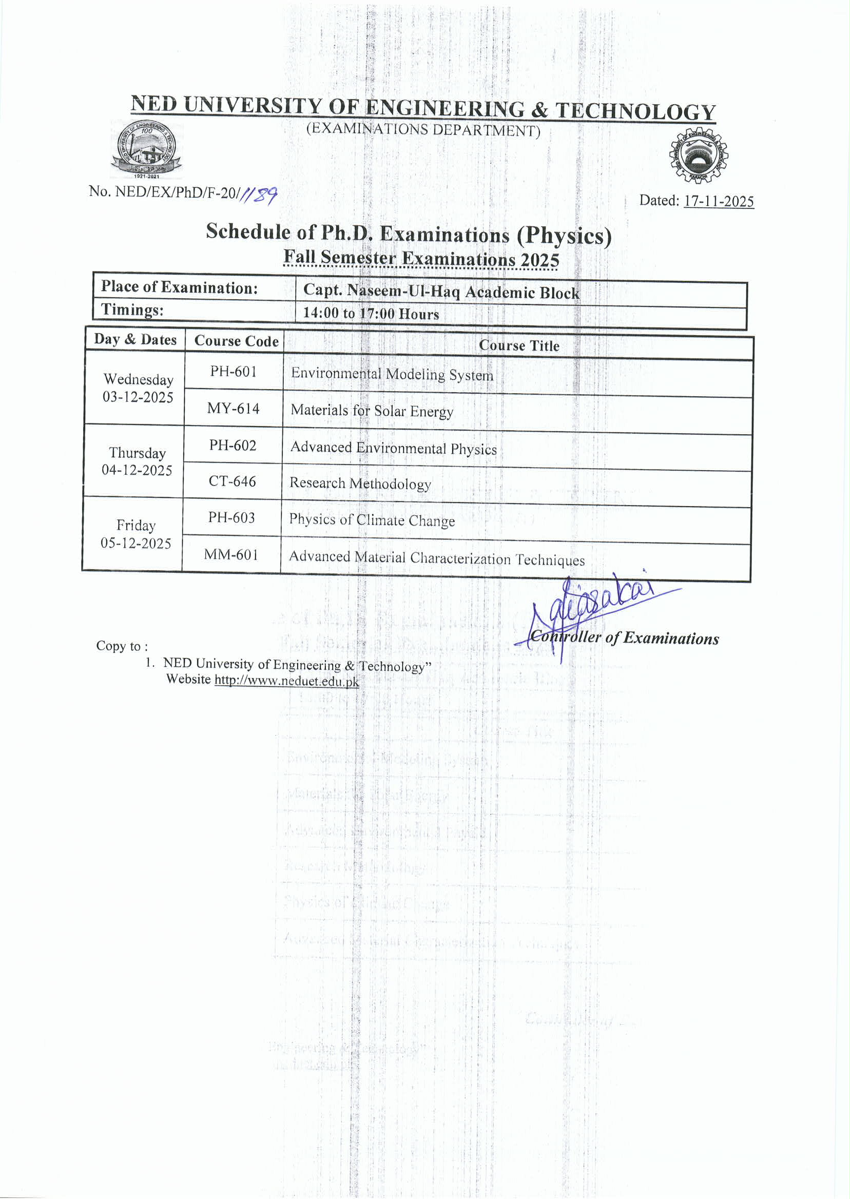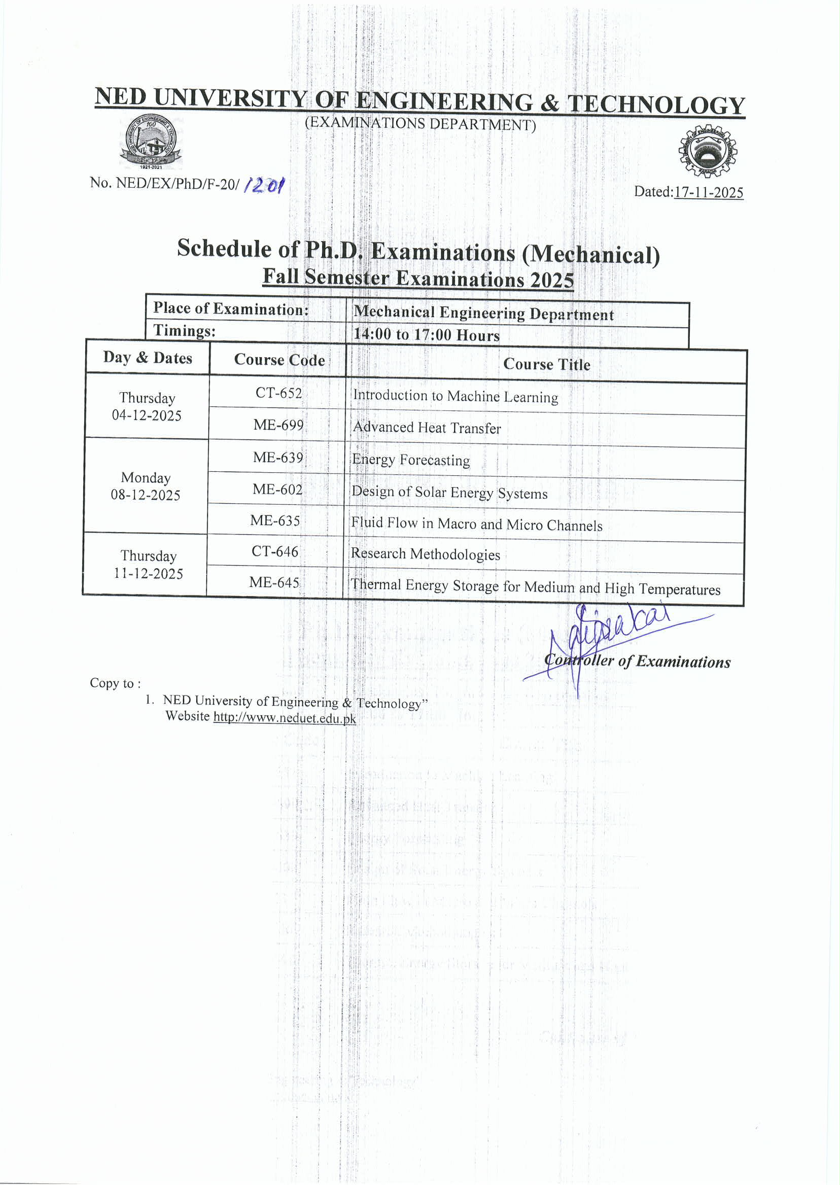 | Ph.D. – DOCTOR OF PHILOSOPHY SCHEDULES (FALL SEMESTER EXAMINATIONS 2025) |