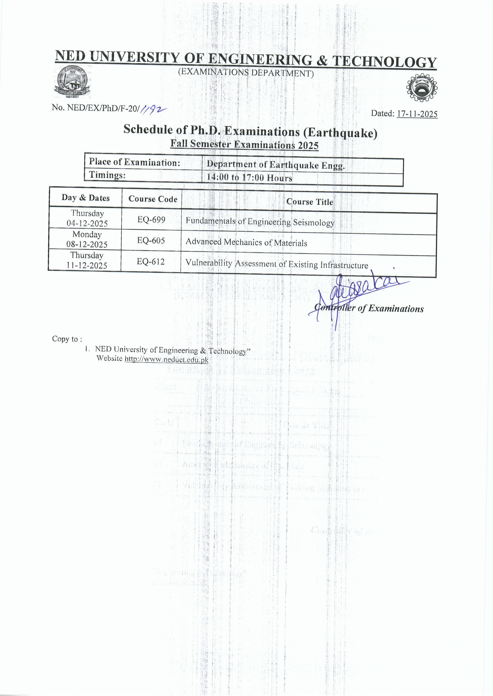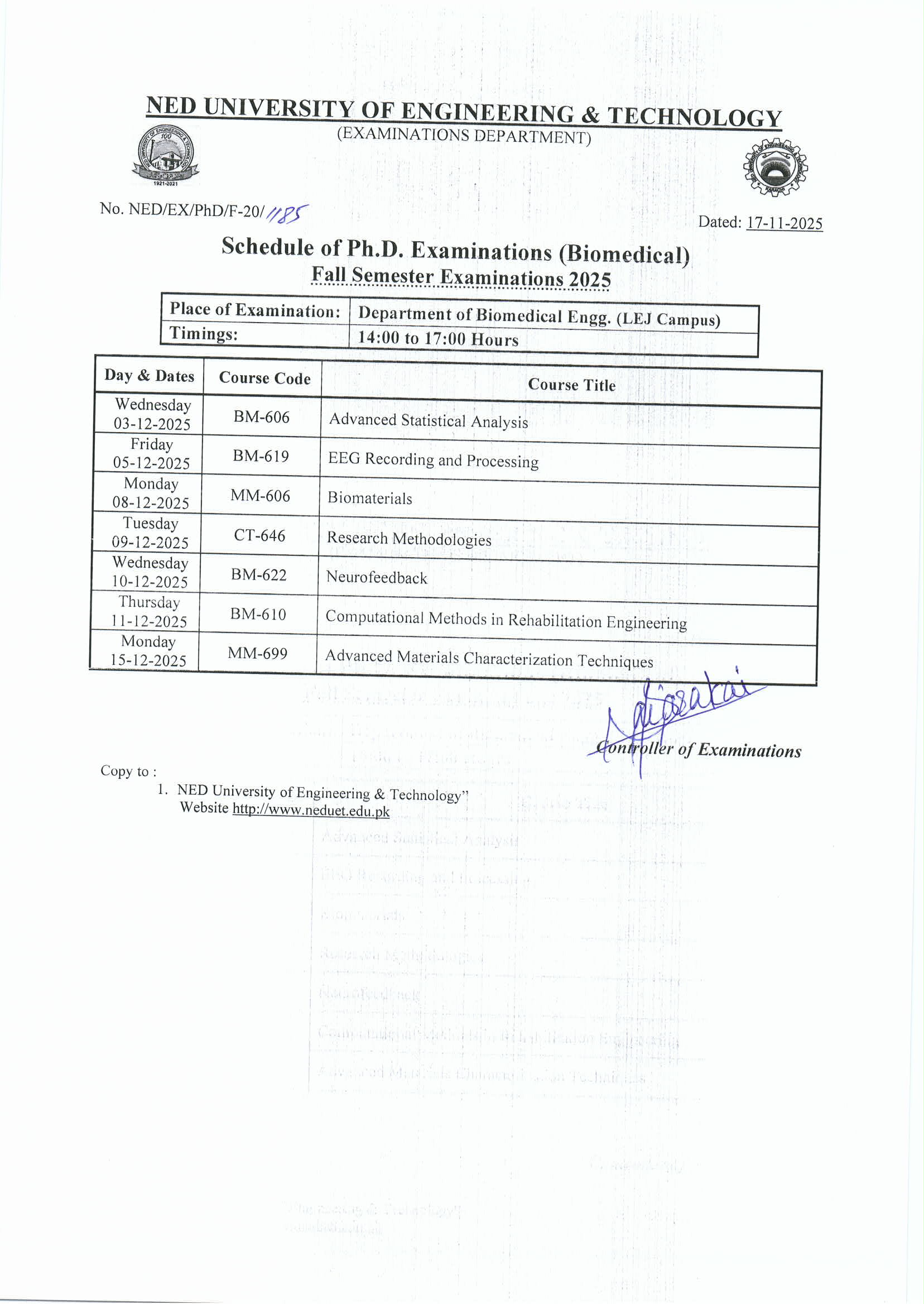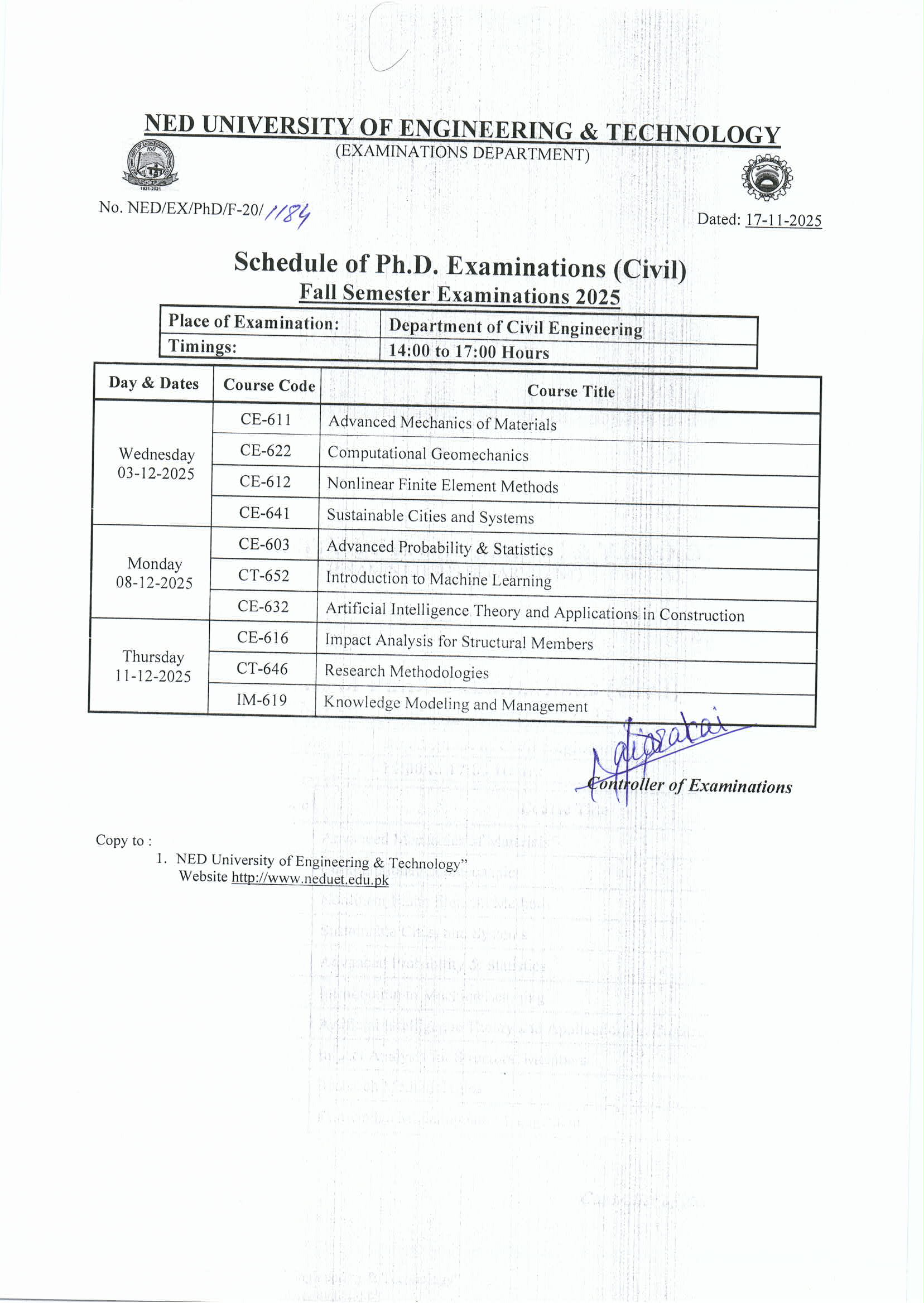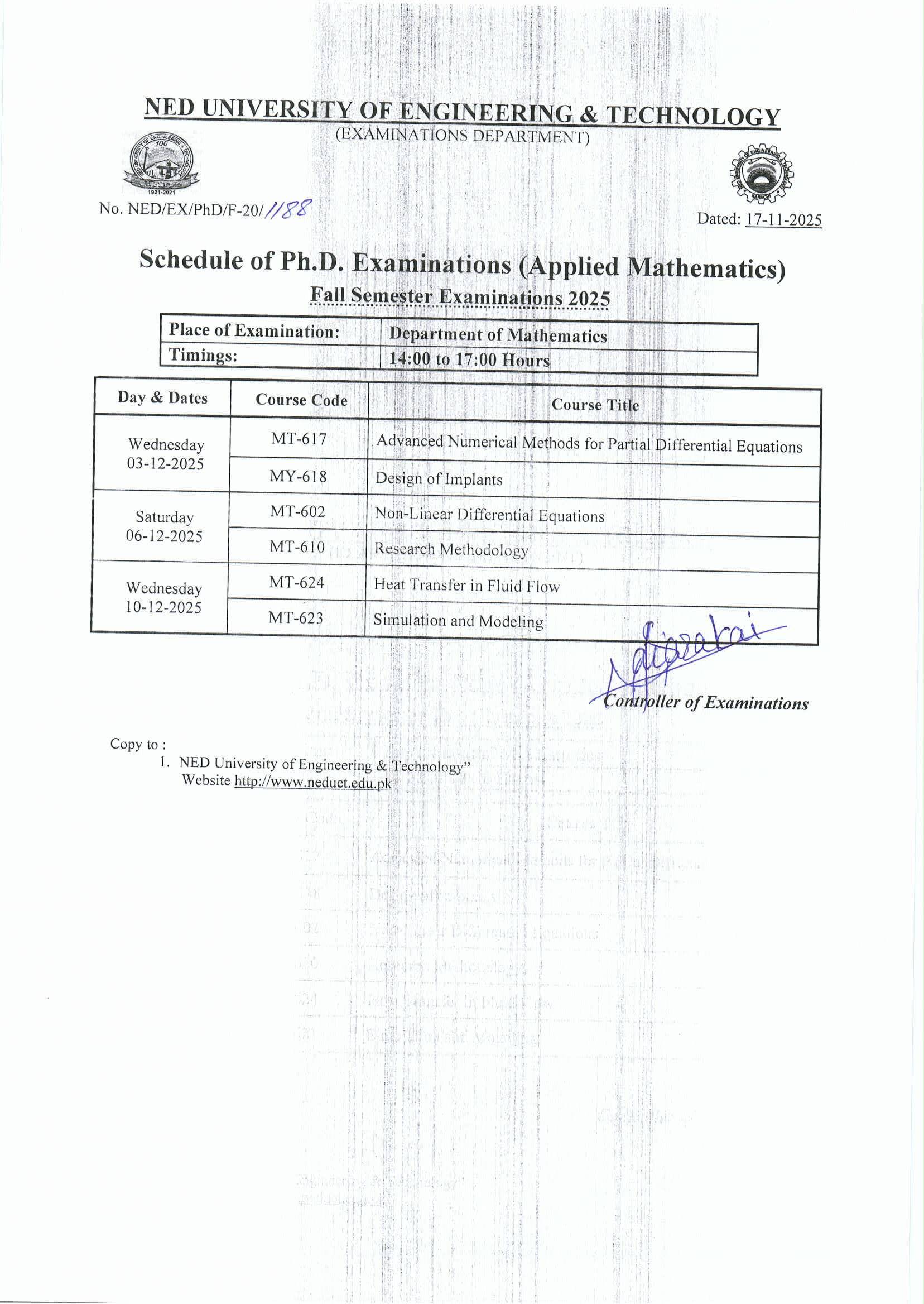 | Ph.D. – DOCTOR OF PHILOSOPHY SCHEDULES (FALL SEMESTER EXAMINATIONS 2025) |
