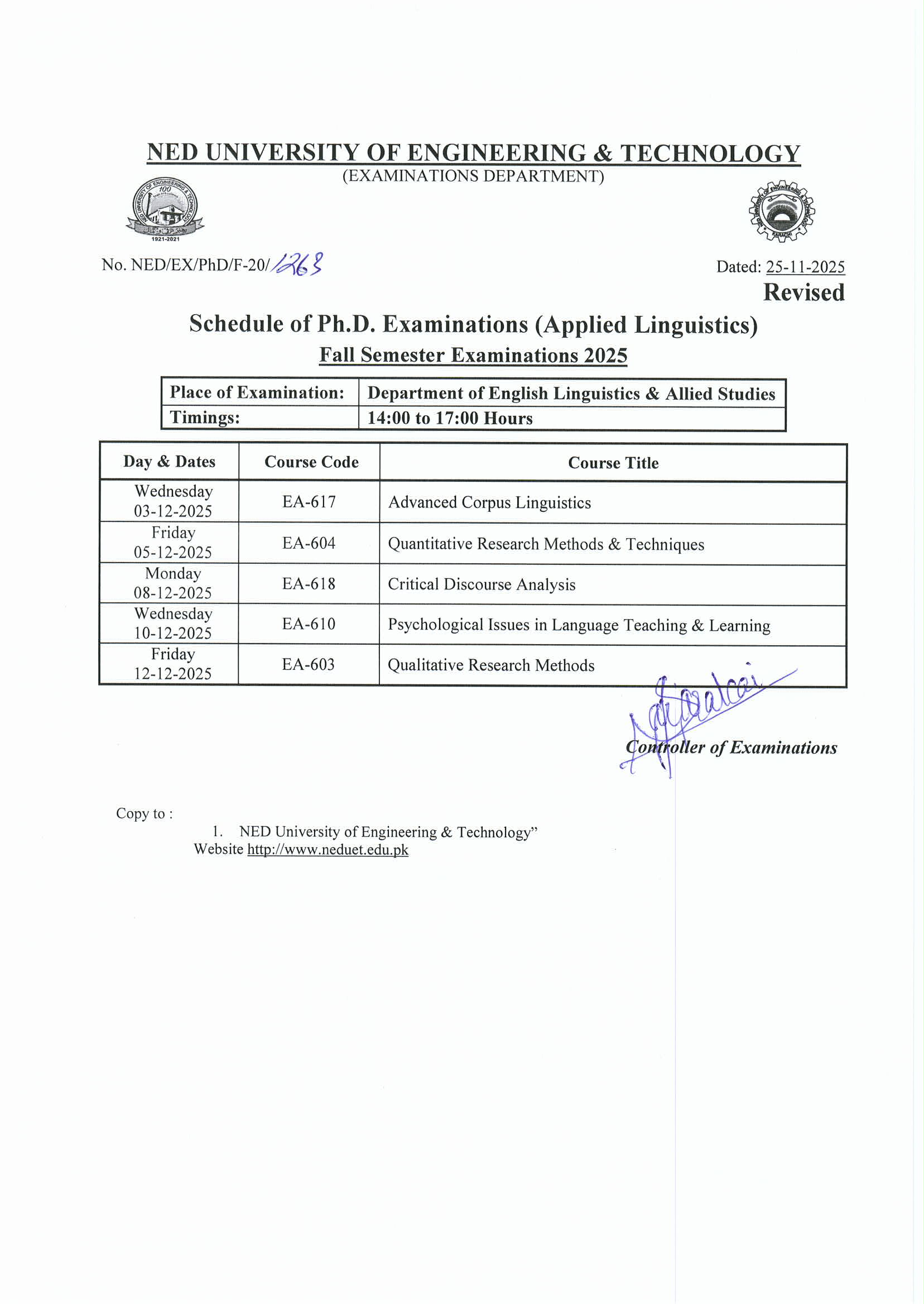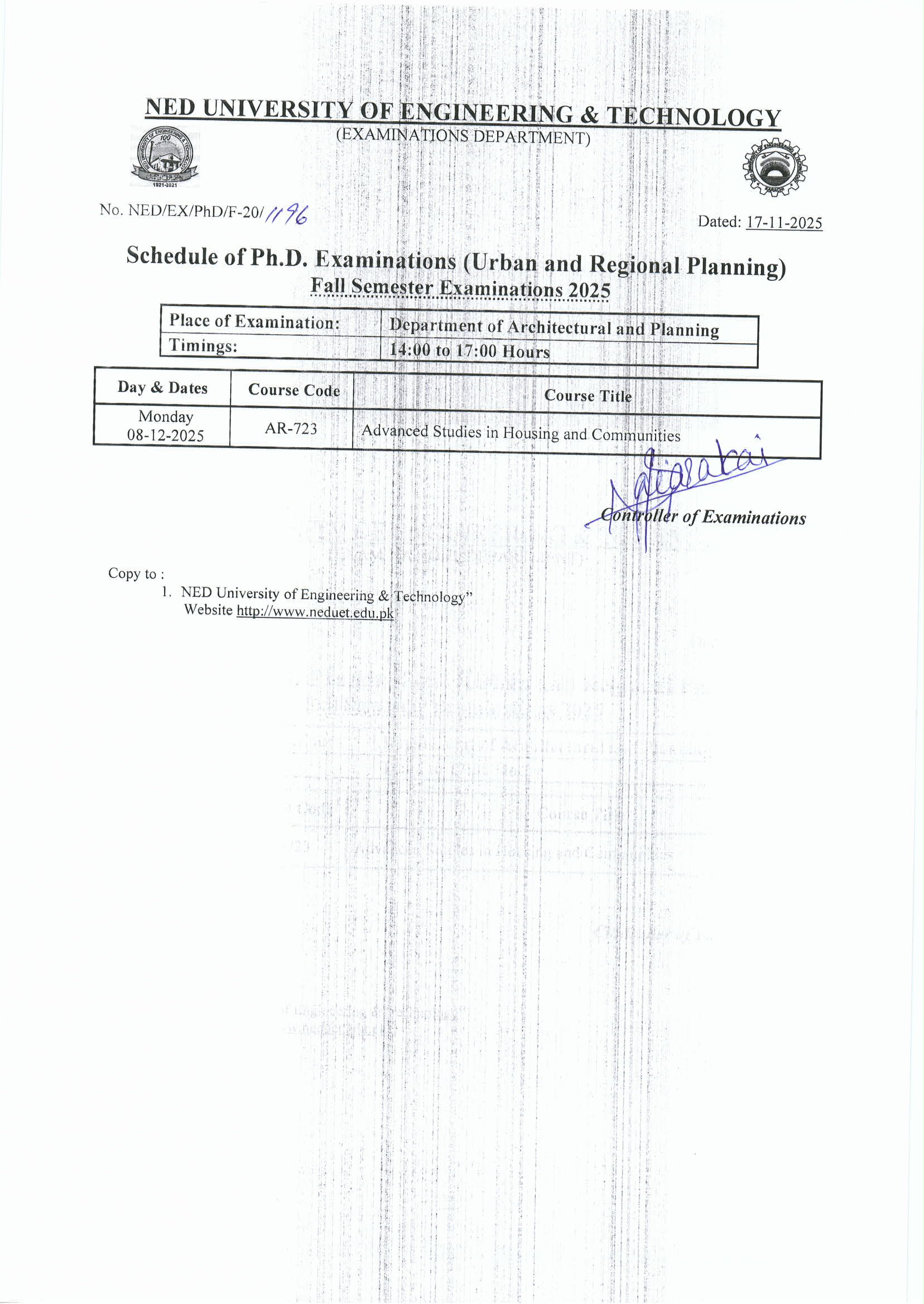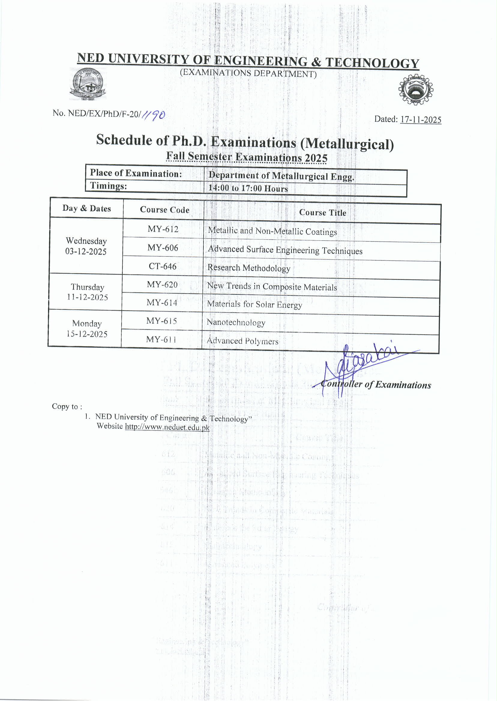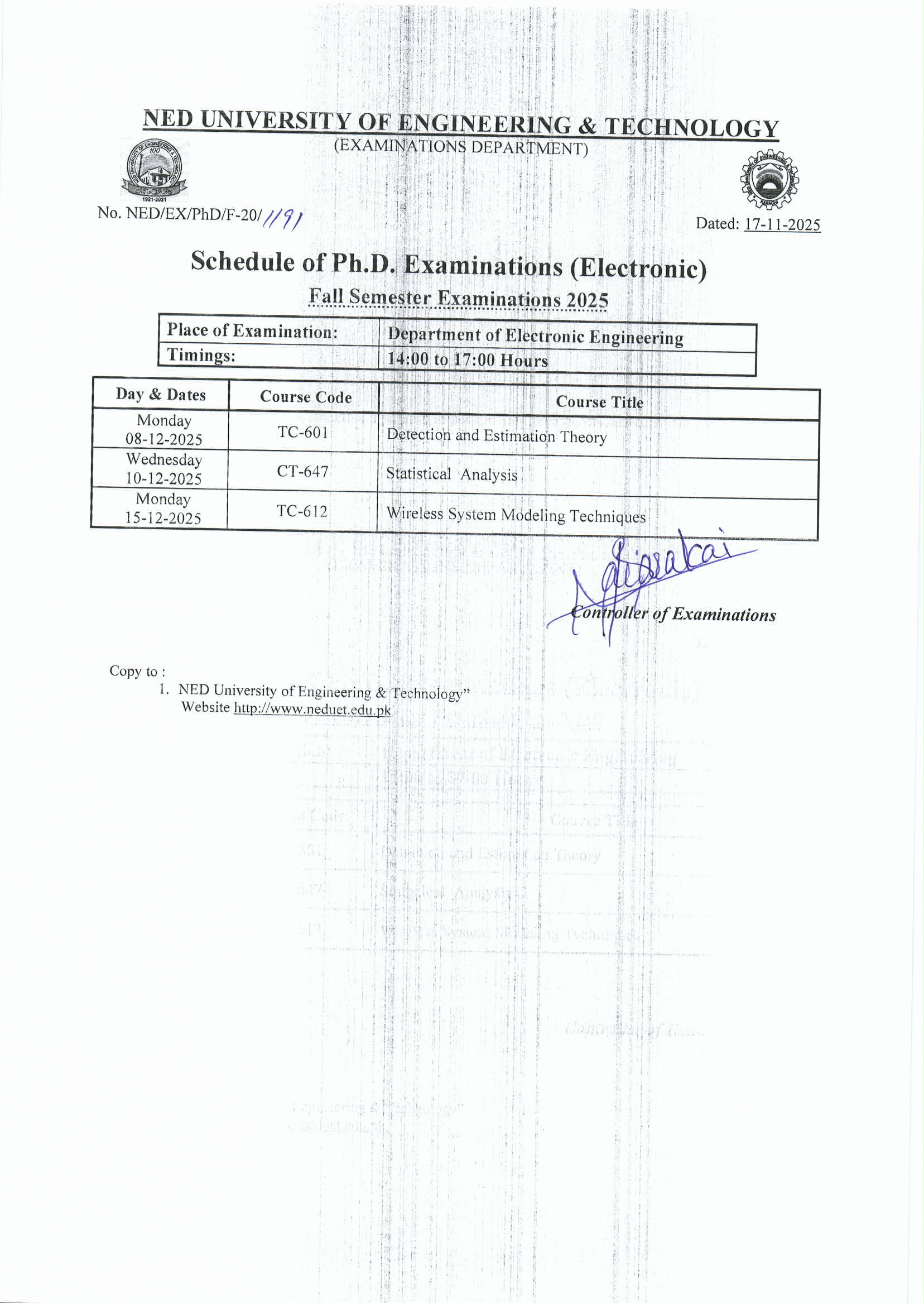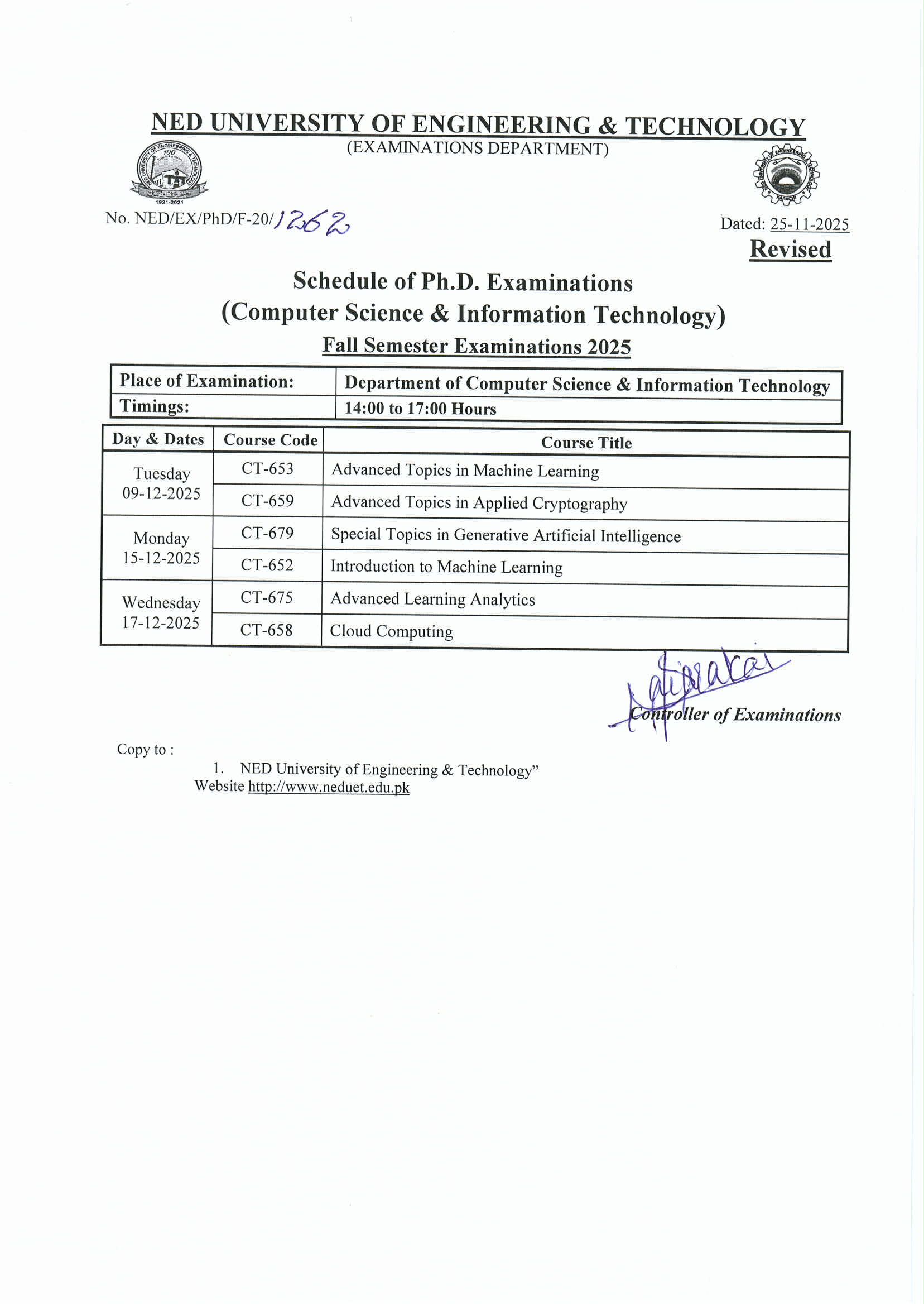 | Ph.D. – DOCTOR OF PHILOSOPHY SCHEDULES (FALL SEMESTER EXAMINATIONS 2025) |