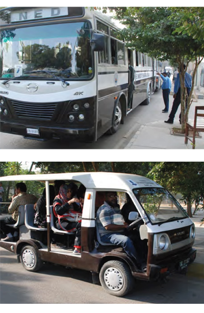 Shuttle service to students from specified routes in the vicinity of Karachi. In house built small shuttle service for picking up students from Main Gates to the nearest location.